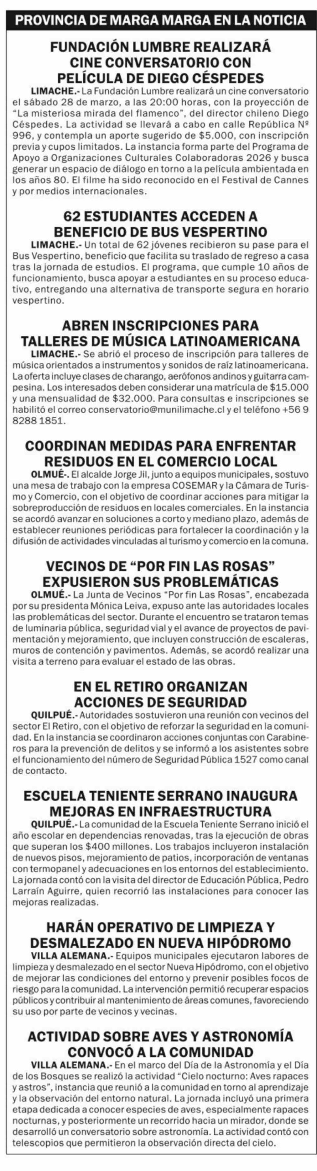 PROVINCIA DE MARGA MARGA EN LA NOTICIA