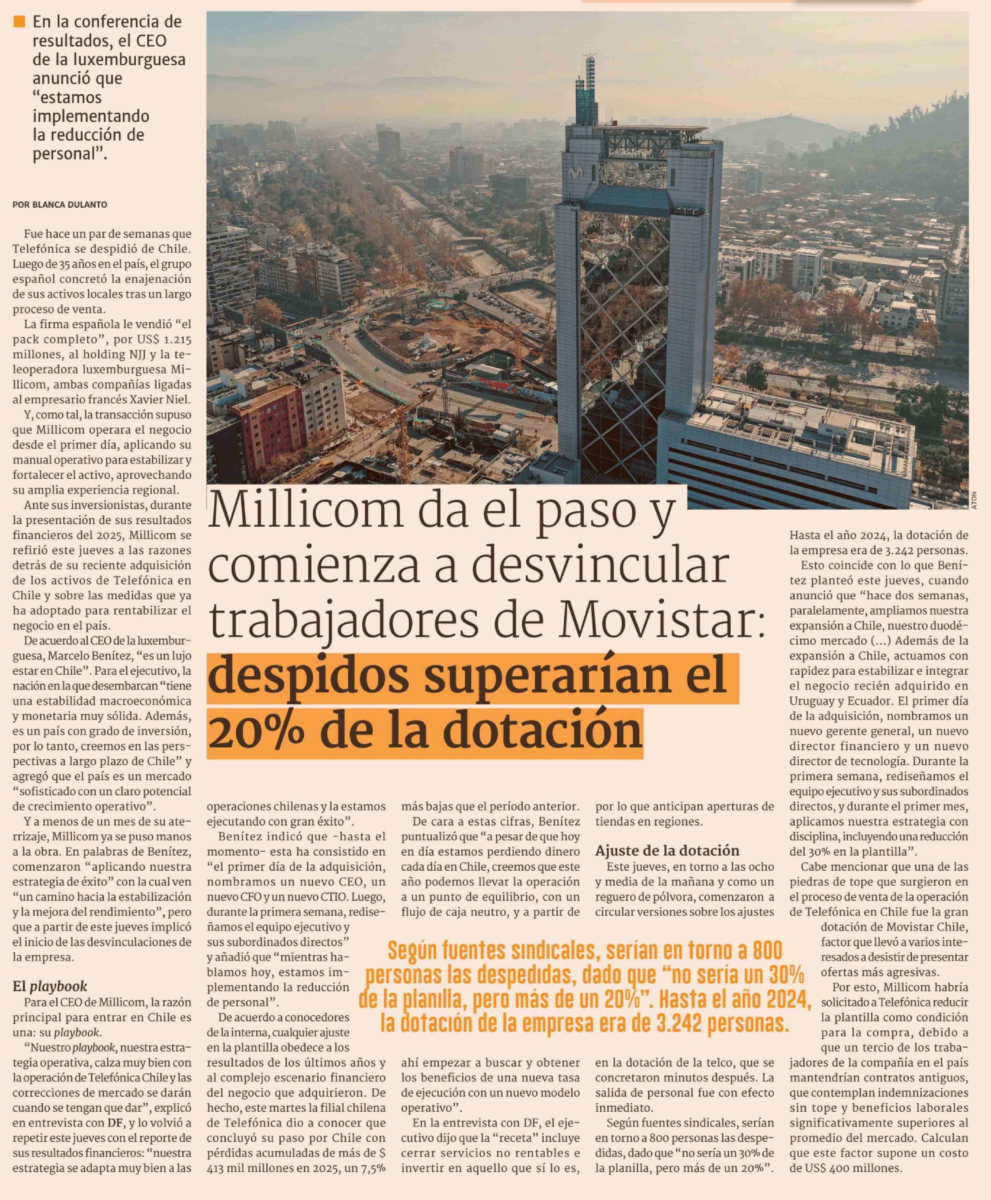 Millicom da el paso y comienza a desvincular trabajadores de Movistar: despidos superarían el 20% de la dotación