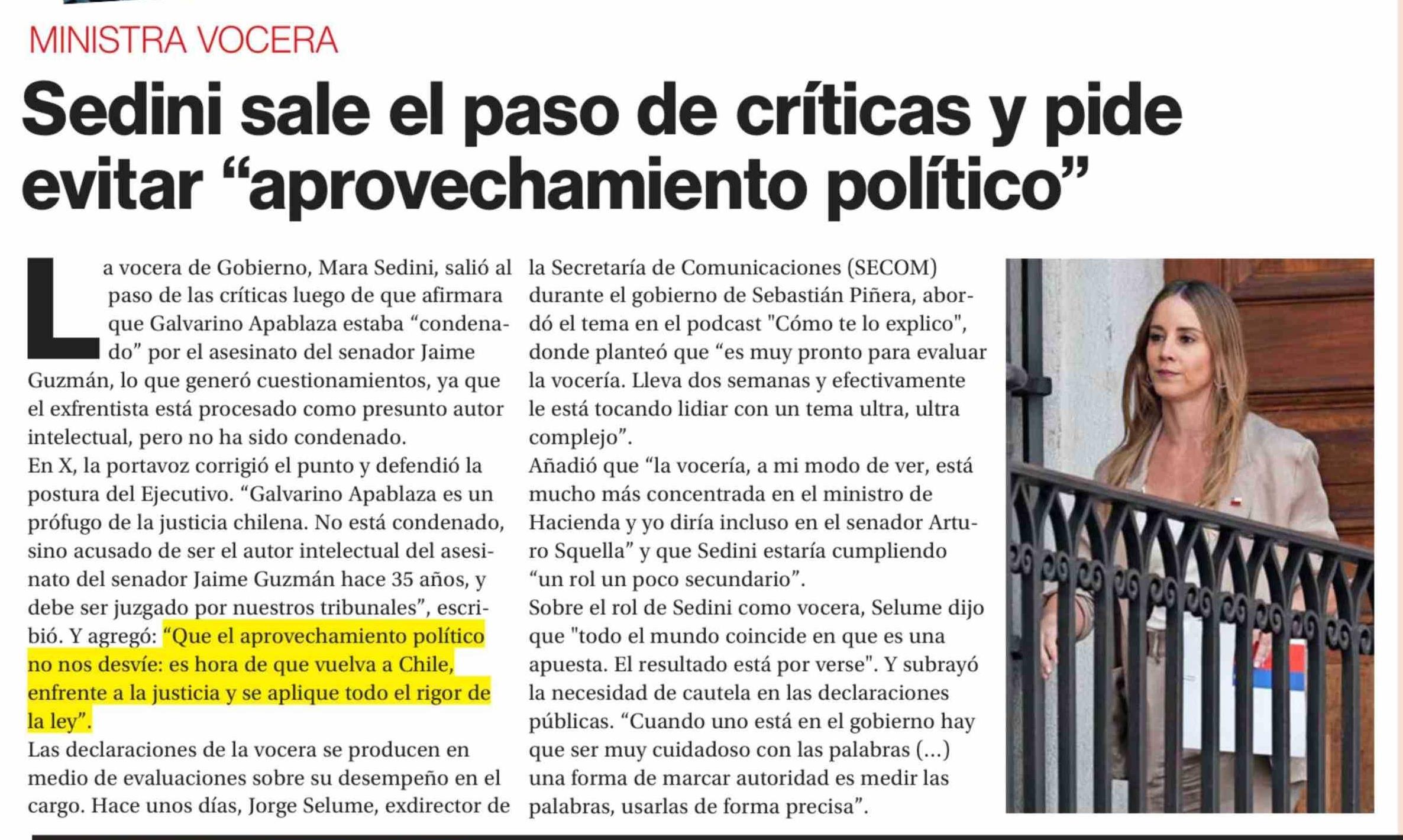 Sedini sale el paso de críticas y pide evitar "aprovechamiento político"