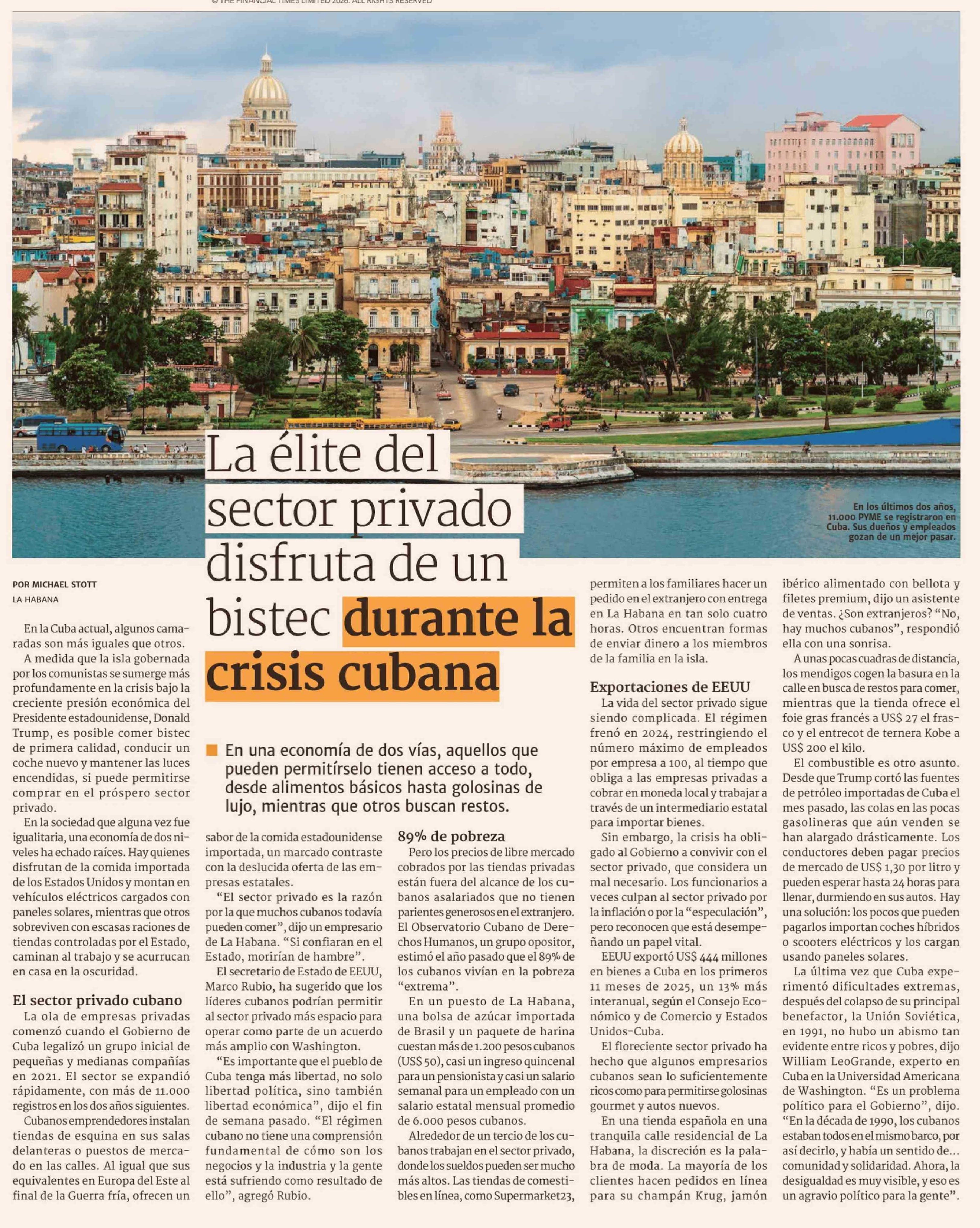 La élite del sector privado disfruta de un bistec durante la crisis cubana