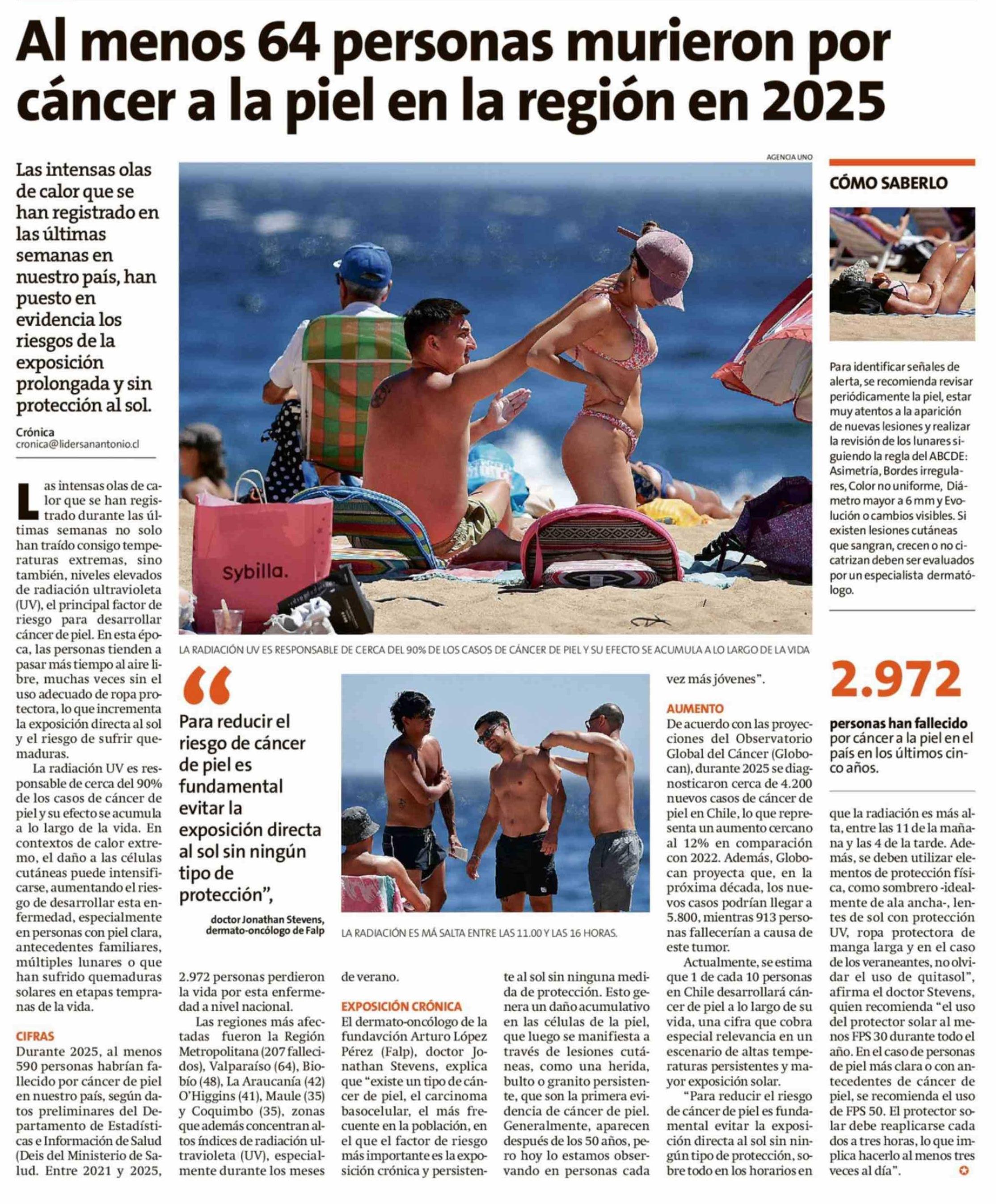 Al menos 64 personas murieron por cáncer a la piel en la región en 2025