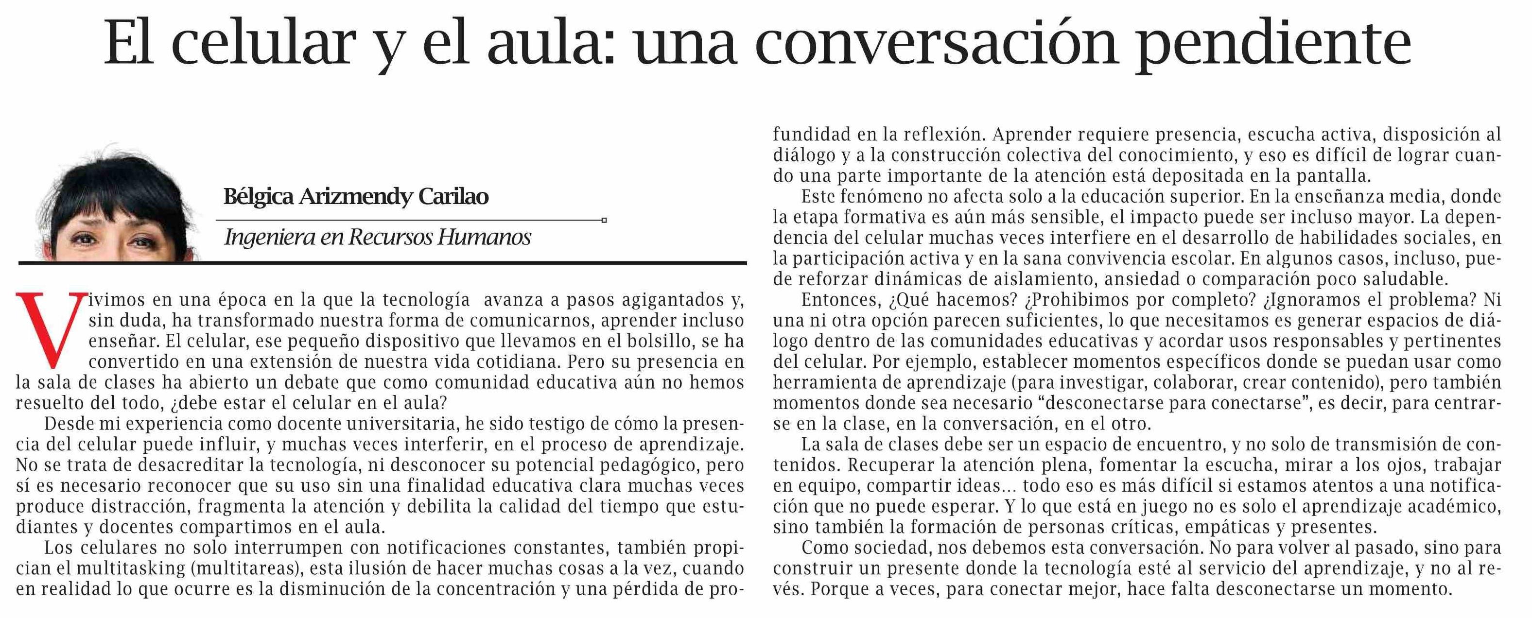 Columnas de Opinión: El celular y el aula: una conversación pendiente
