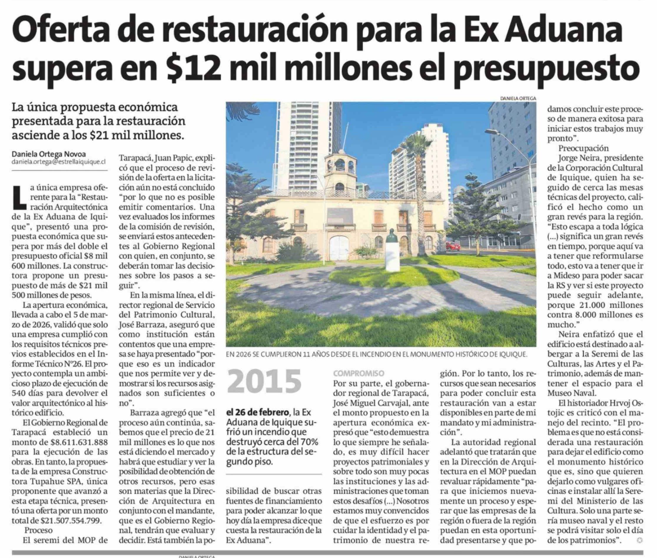 Oferta de restauración para la Ex Aduana supera en $12 mil millones el presupuesto