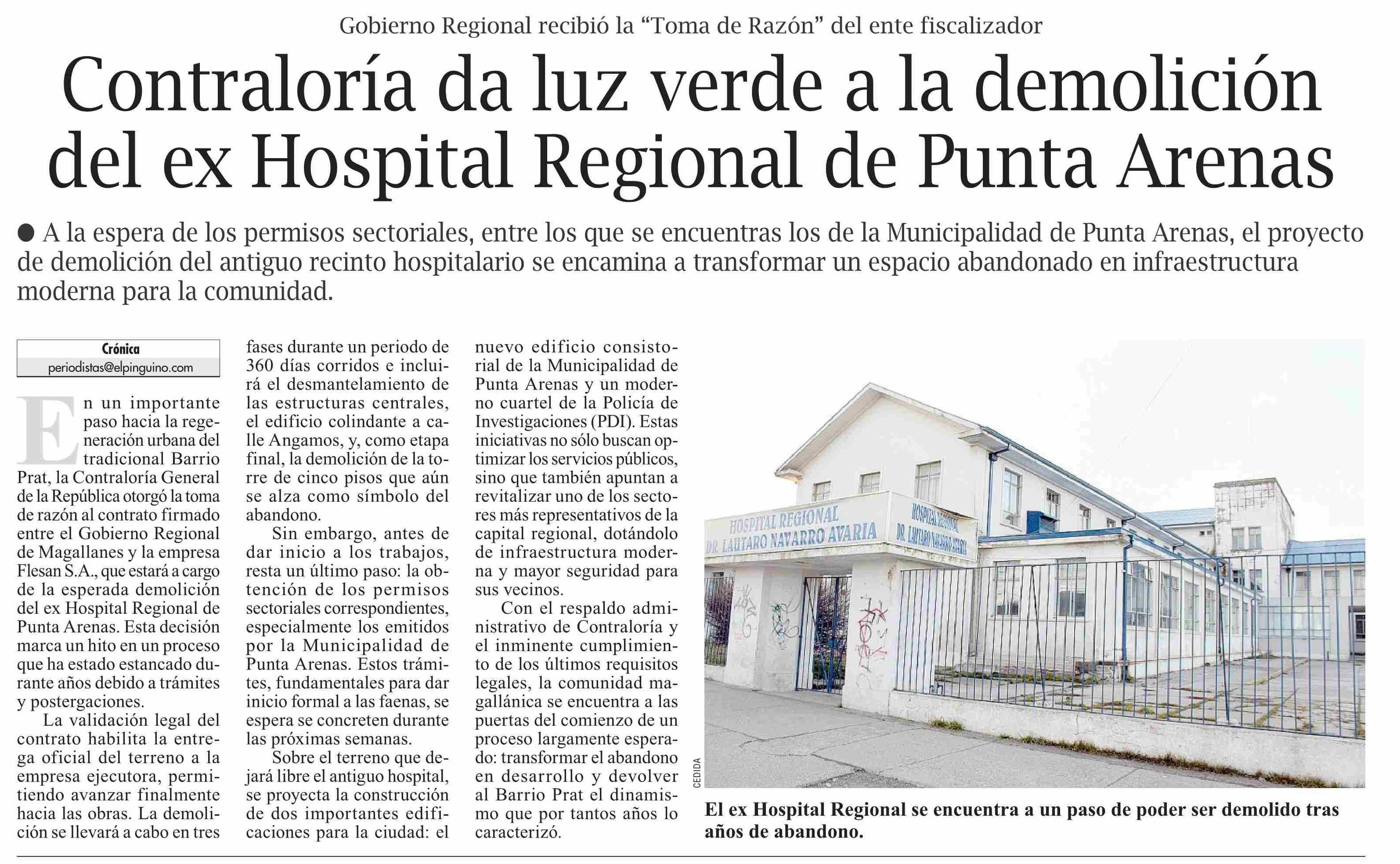 Contraloría da luz verde a la demolición del ex Hospital Regional de Punta Arenas