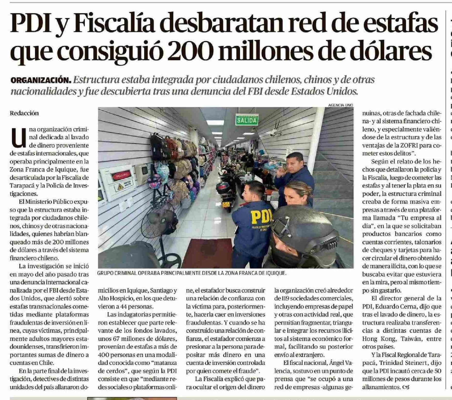 PDI y Fiscalía desbaratan red de estafas que consiguió 200 millones de dólares