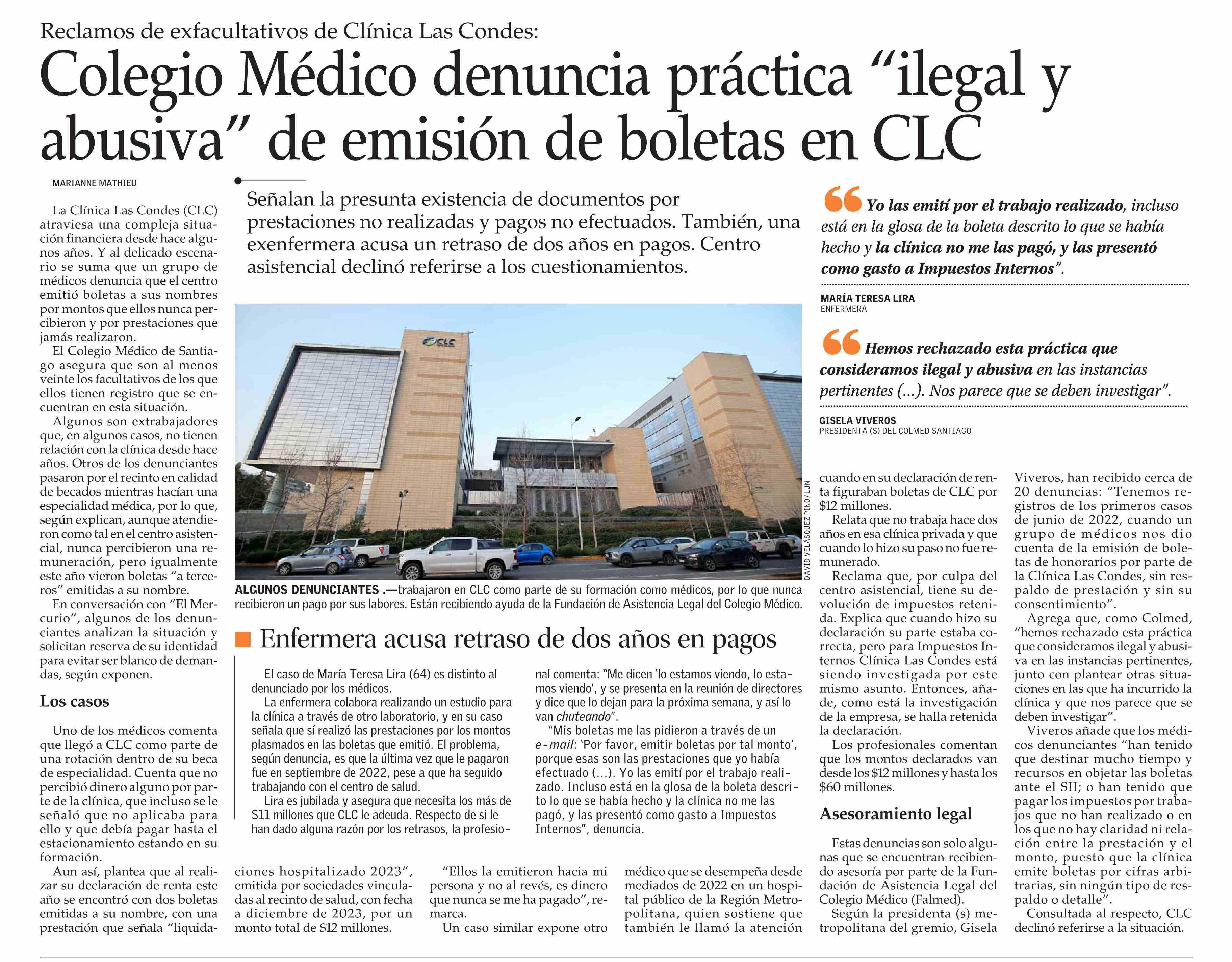 Colegio Médico denuncia práctica "ilegal y abusiva" de emisión de boletas en CLC