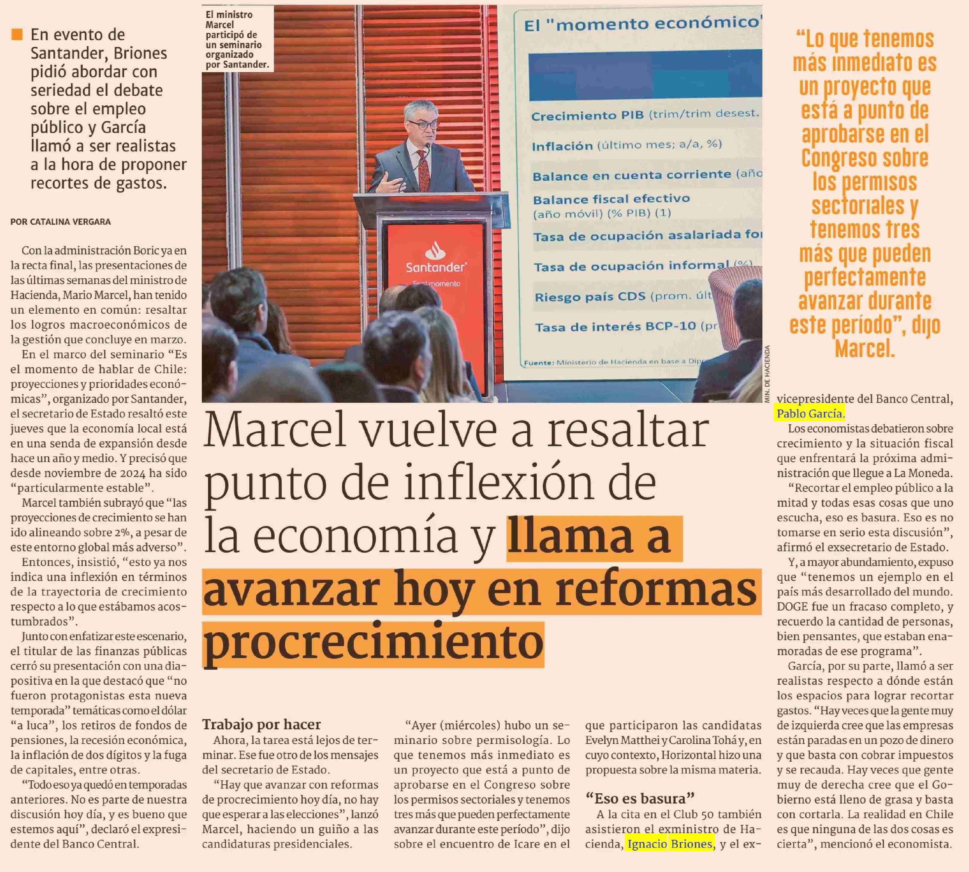 Marcel vuelve a resaltar punto de inflexión de la economía y llama a avanzar hoy en reformas procrecimiento