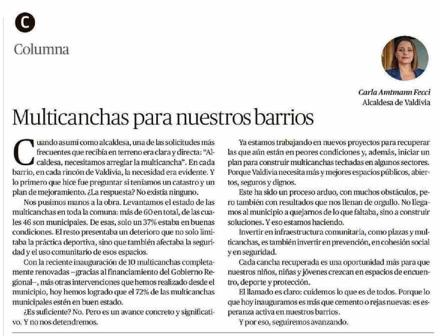 Columnas de Opinión: Multicanchas para nuestros barrios