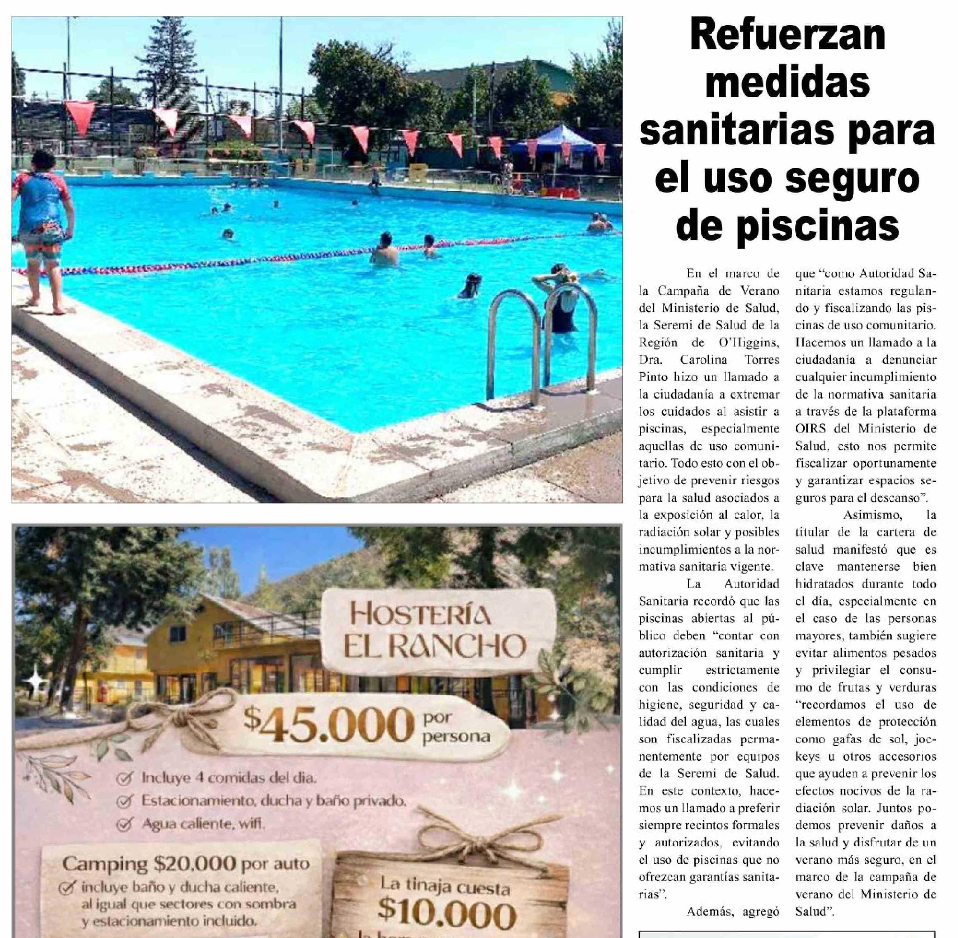 Refuerzan medidas sanitarias para el uso seguro de piscinas