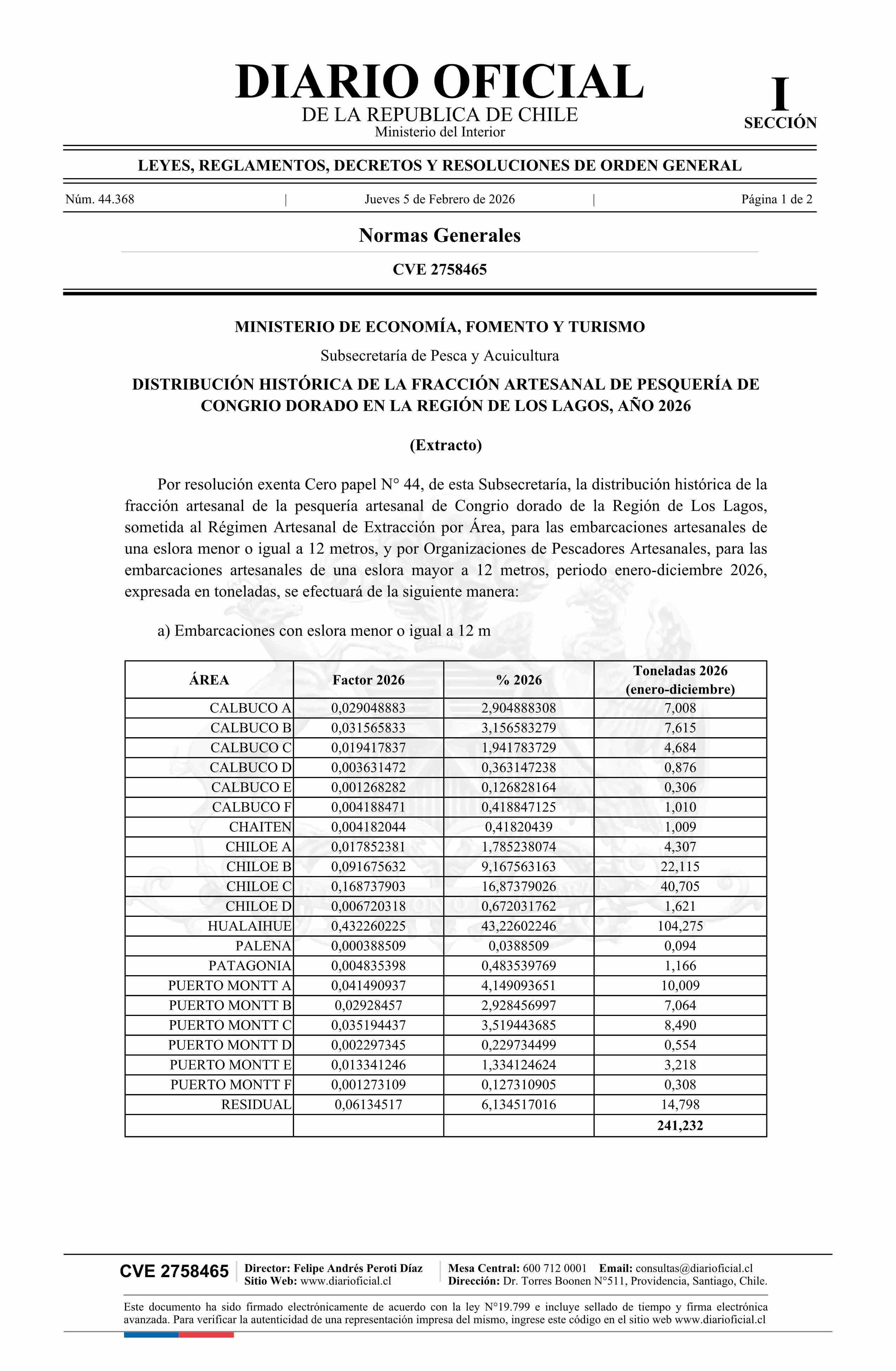 | Título: | Extracto de resolución exenta número 44, de 2026.- Distribución histórica de la fracción artesanal de pesquería de congrio dorado en la Región de Los Lagos, año 2026 |