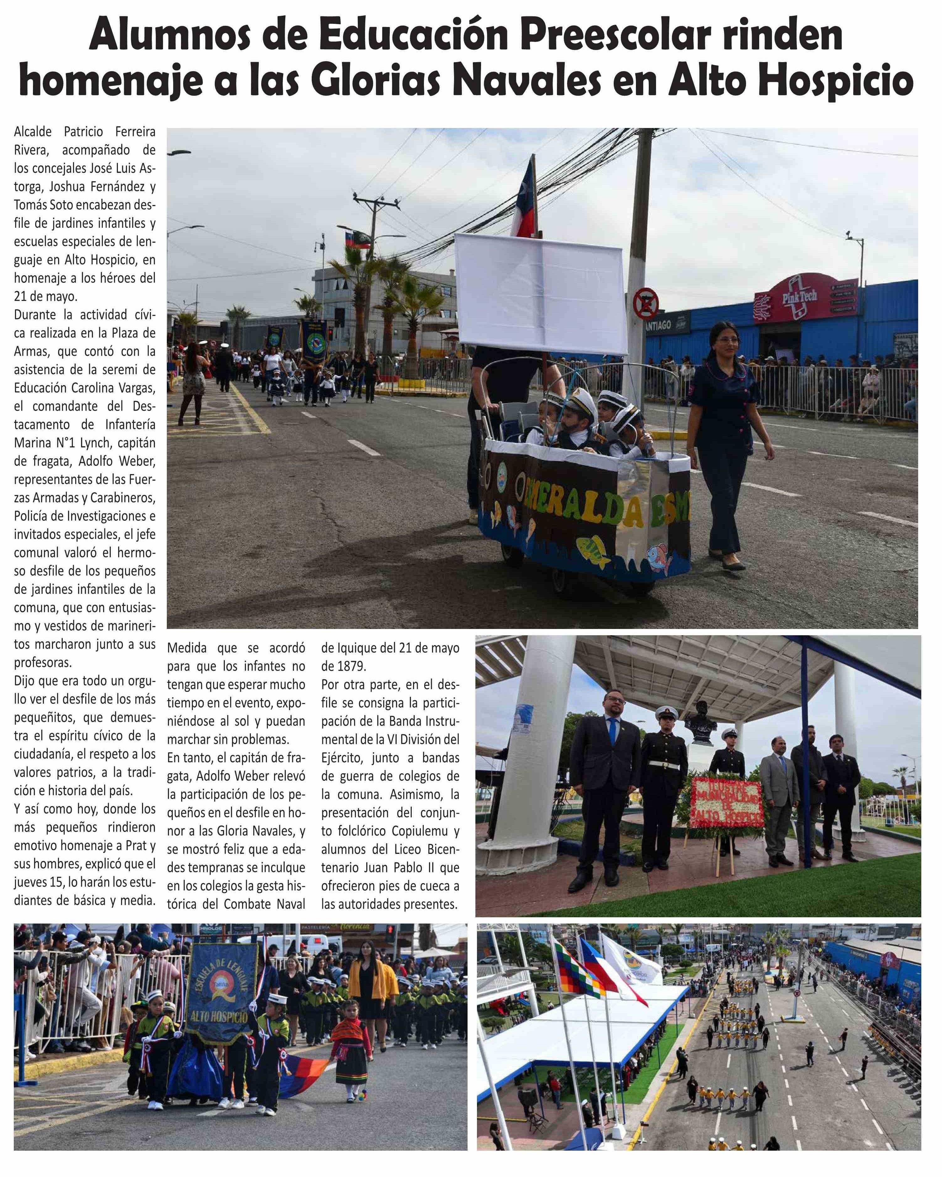 Alumnos de Educación Preescolar rinden homenaje a las Glorias Navales en Alto Hospicio