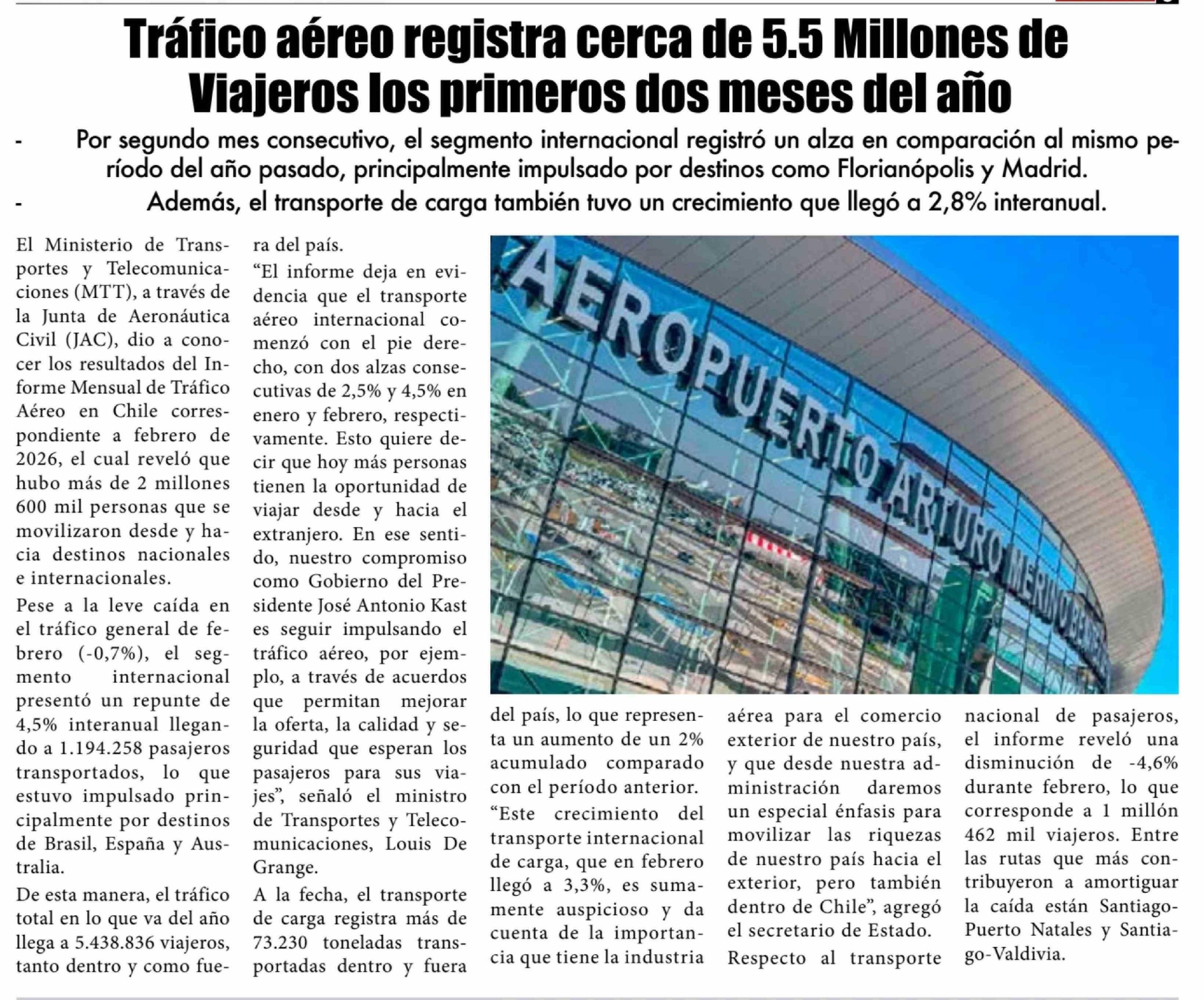 Tráfico aéreo registra cerca de 5.5 Millones de Viajeros los primeros dos meses del año