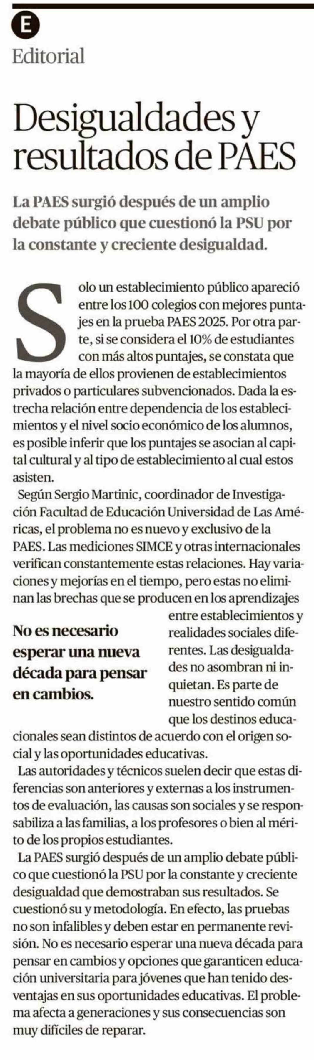 Título: Editorial: Desigualdades y resultados de PAES