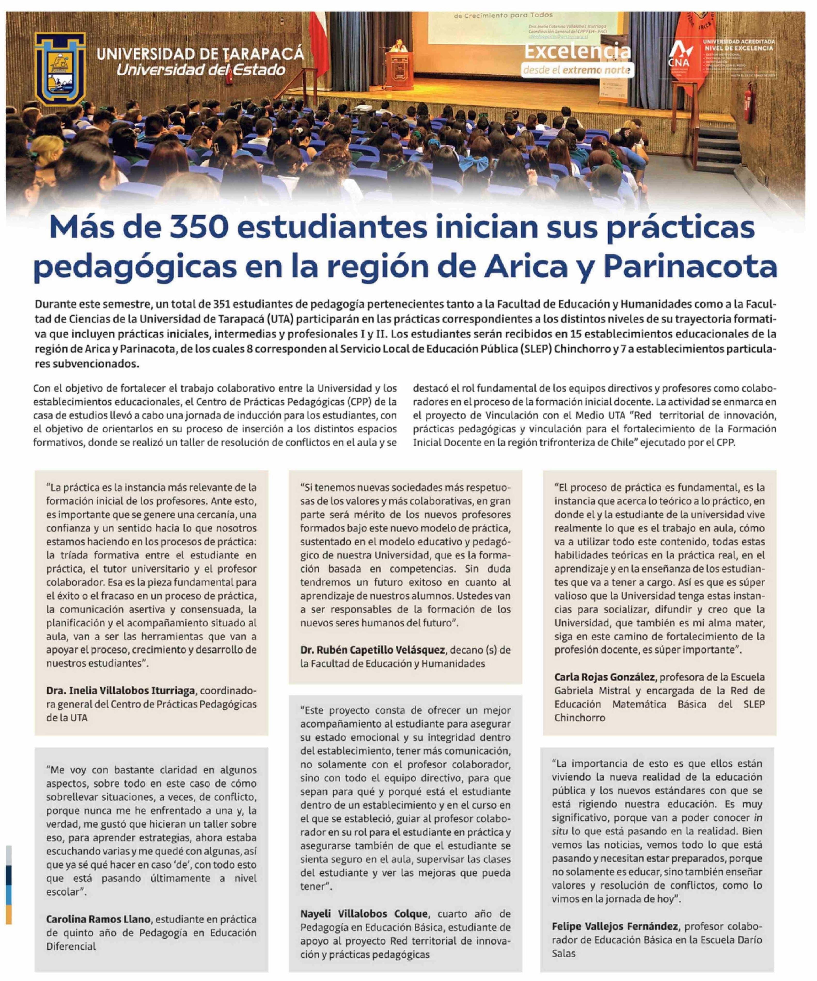 Más de 350 estudiantes inician sus prácticas pedagógicas en la región de Arica y Parinacota