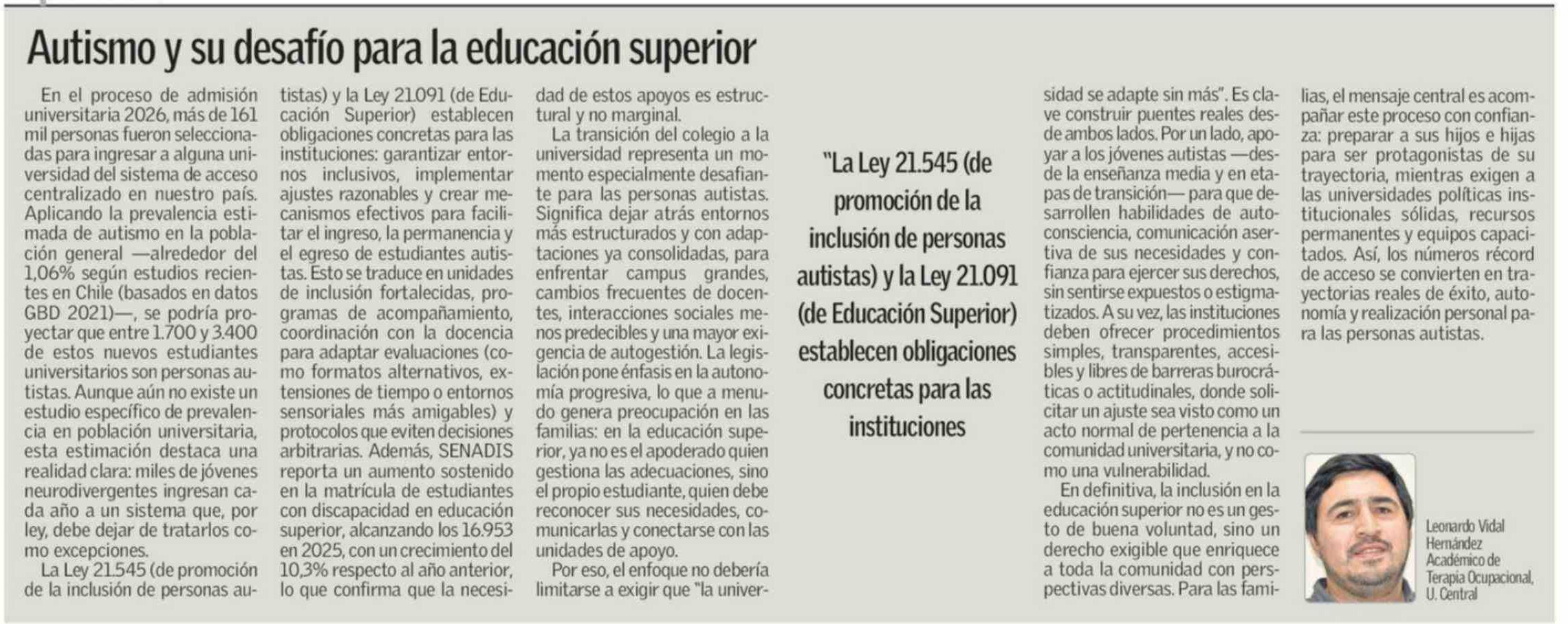 Autismo y su desafío para la educación superior
