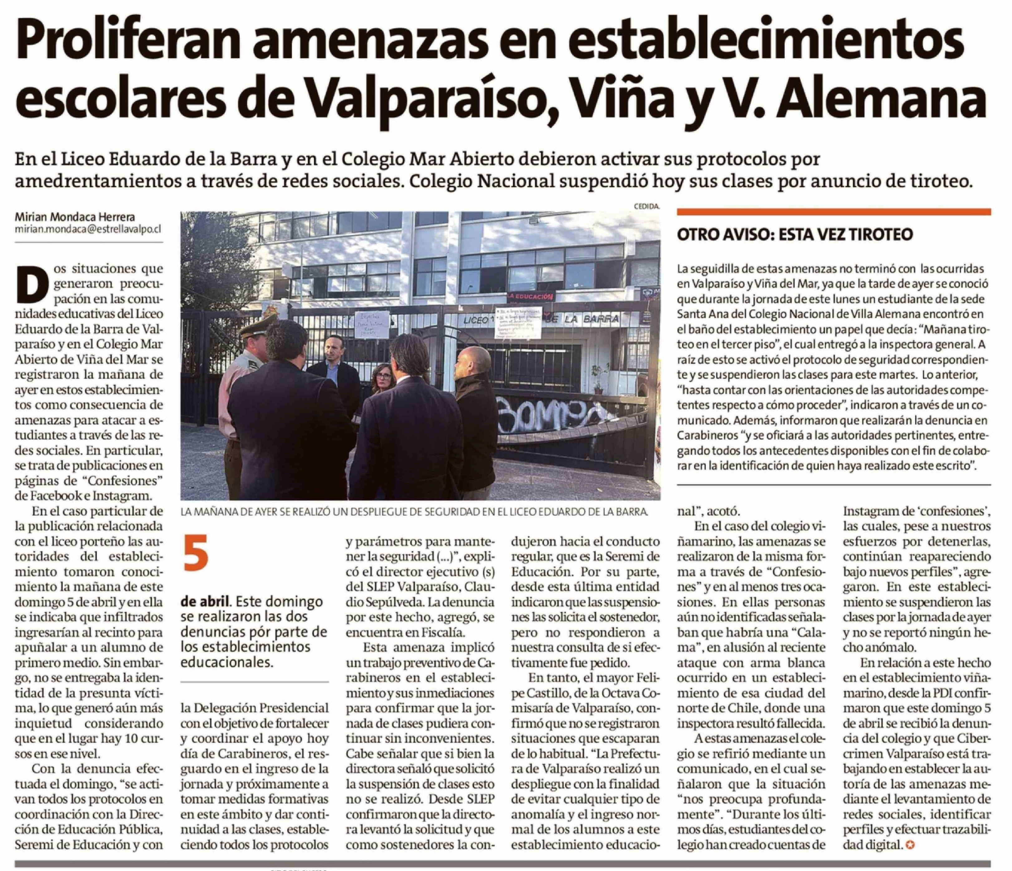 Proliferan amenazas en establecimientos escolares de Valparaíso, Viña y V. Alemana