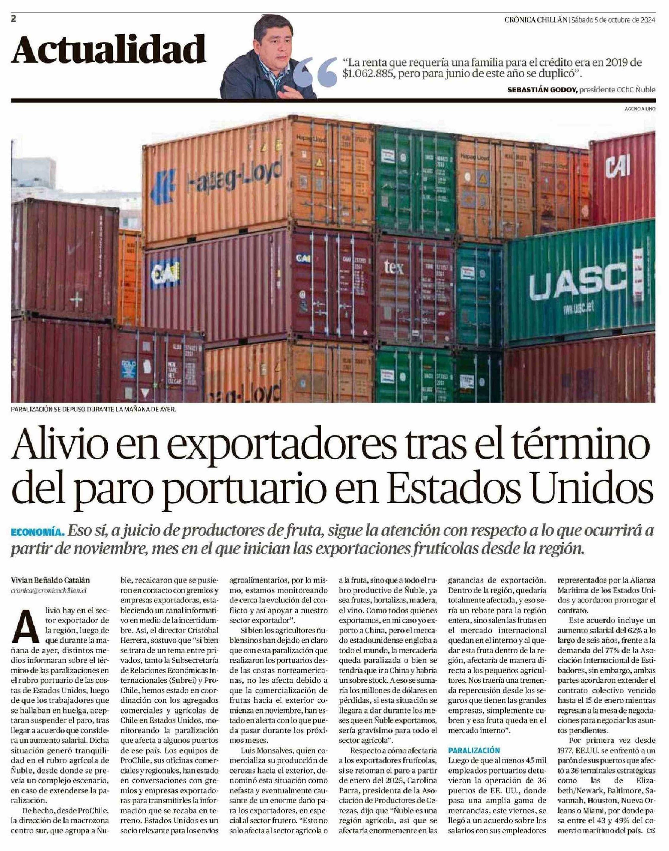 Alivio en expor del paro portuario en Estados Unidos tadores tras el término