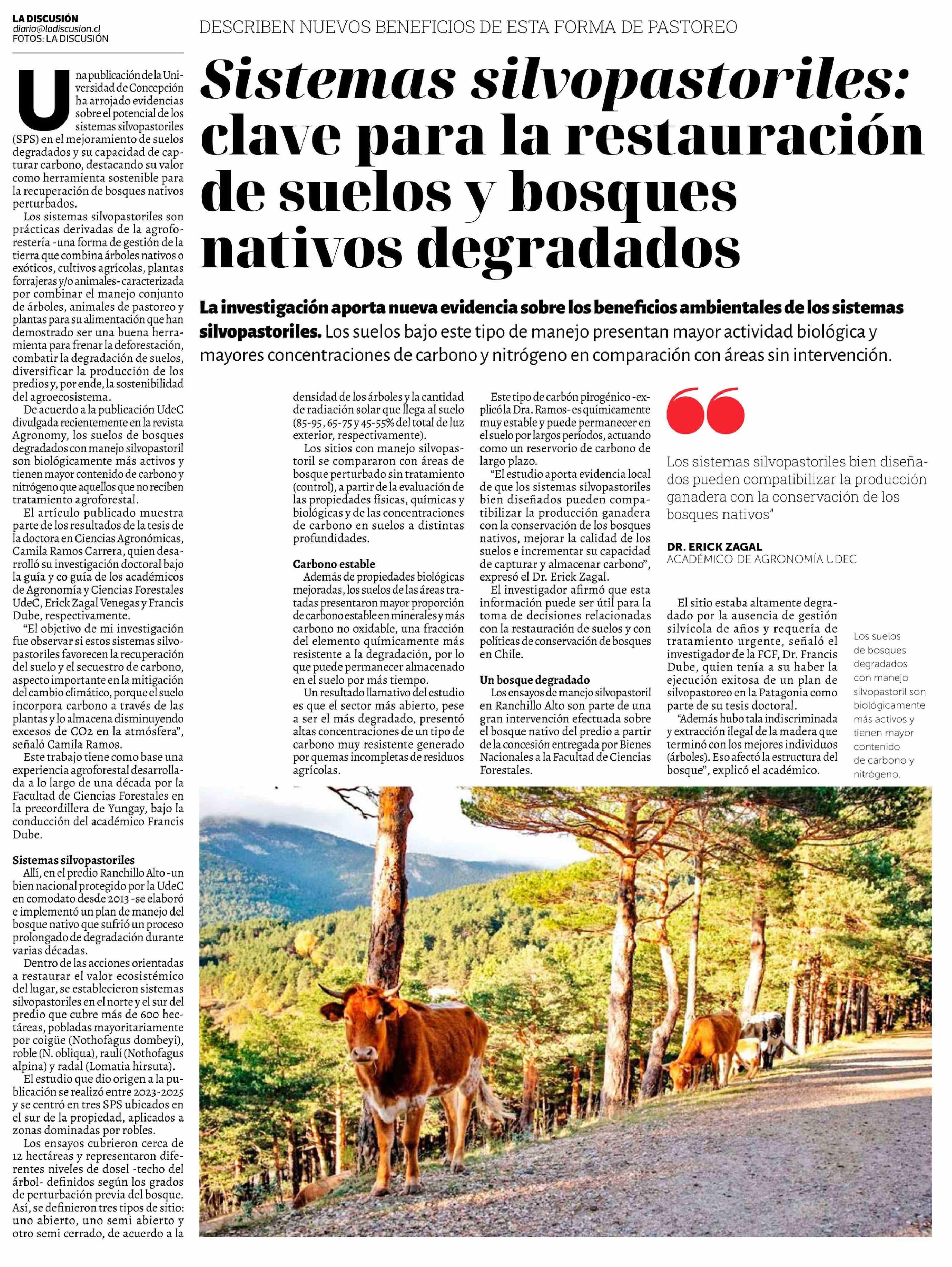 Sistemas silvopastoriles: clave para la restauración de suelos y bosques nativos degradados