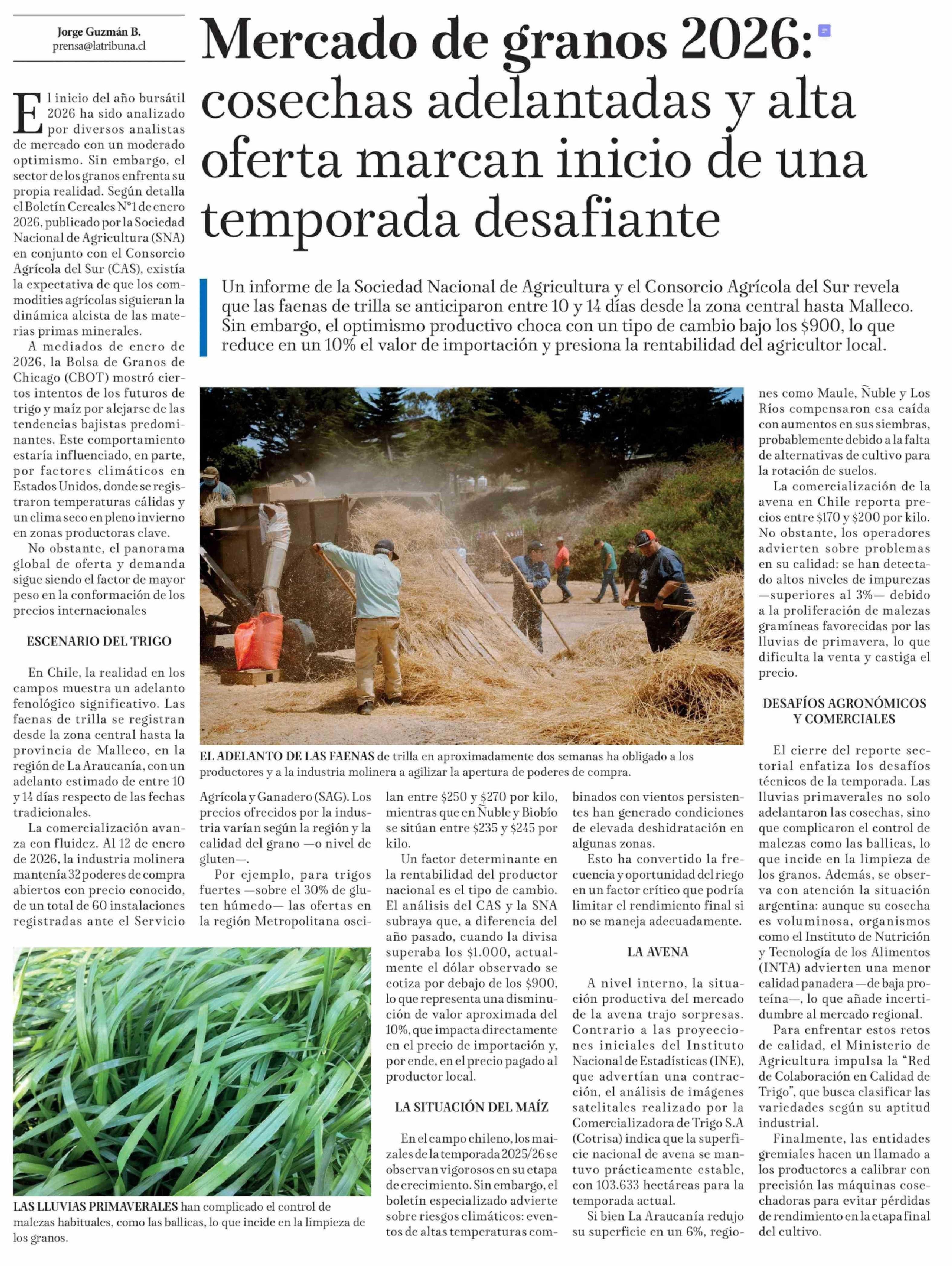 Mercado de granos 2026: cosechas adelantadas y alta oferta marcan inicio de una temporada desafiante