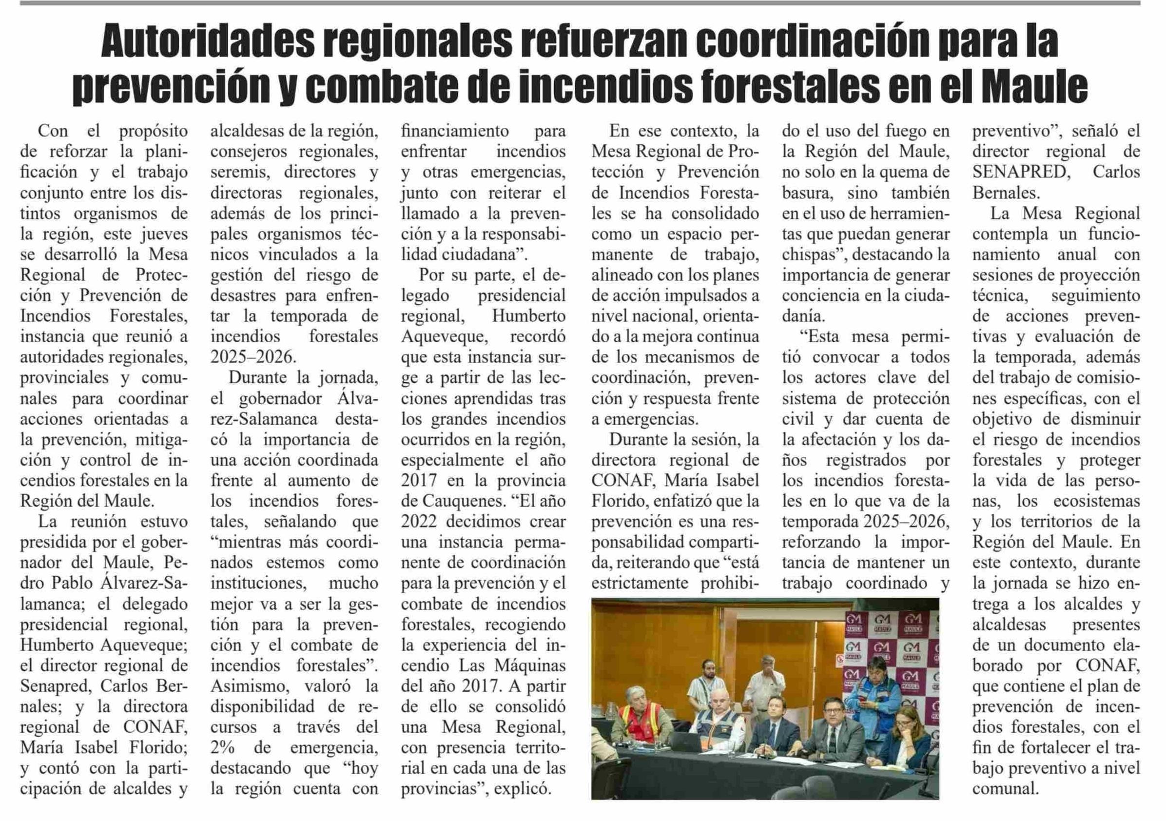 Autoridades regionales refuerzan coordinación para la prevención y combate de incendios forestales en el Maule
