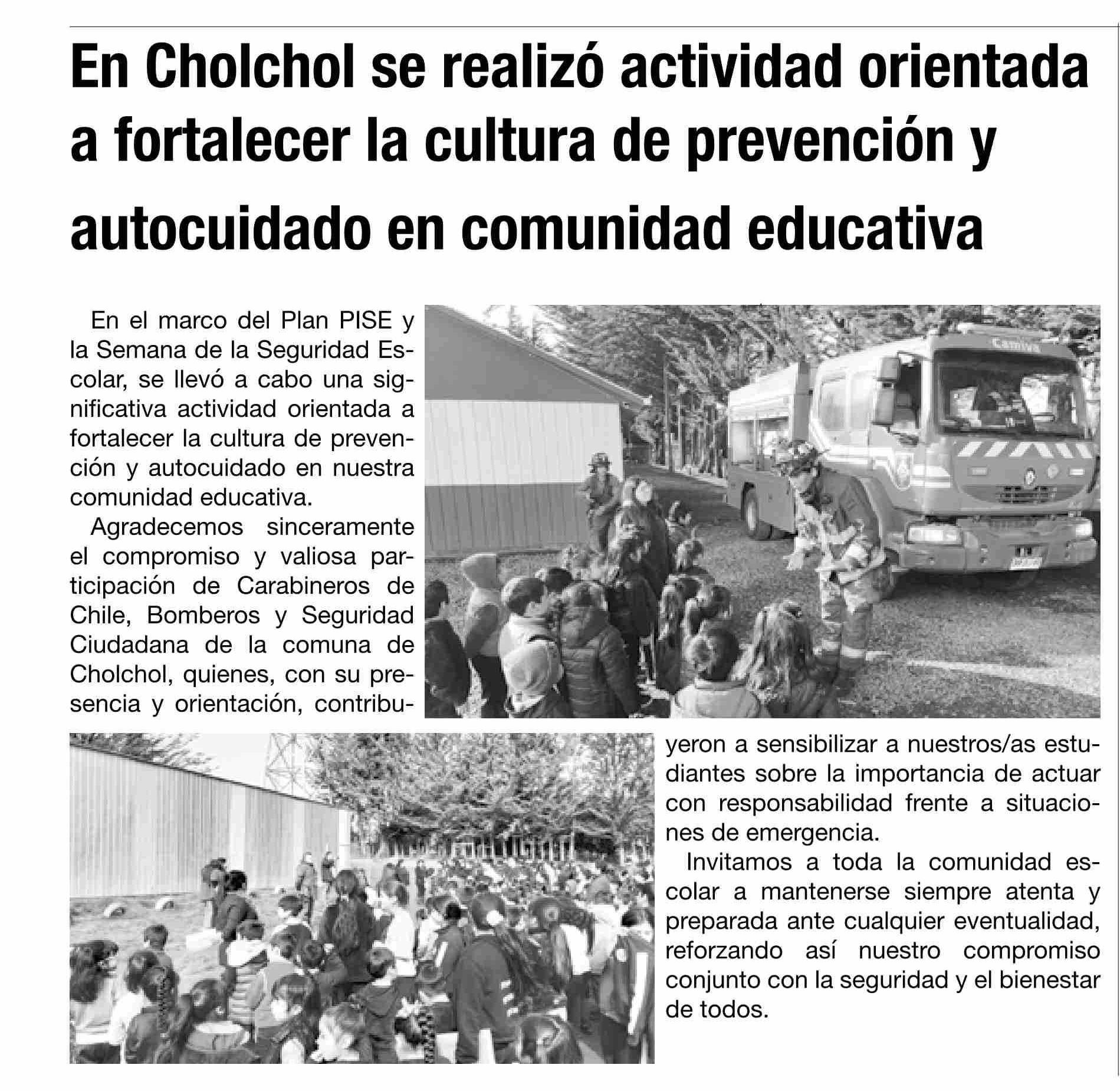 Cholchol se realizó actividad orientada a forLalecer la cultura de prevención y autocuidado en comunidad educativa