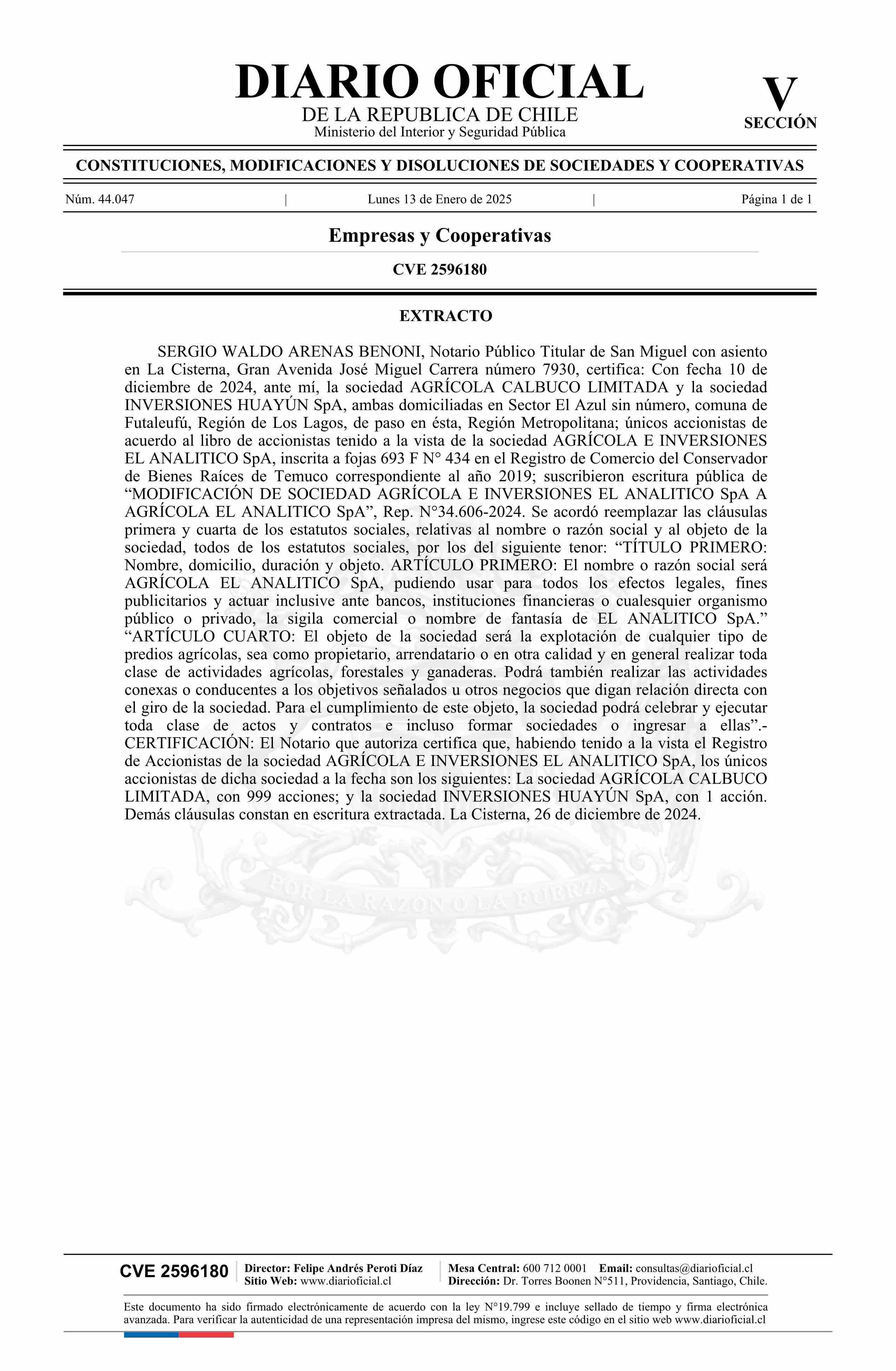 AGRÍCOLA E INVERSIONES EL ANALITICO SpA