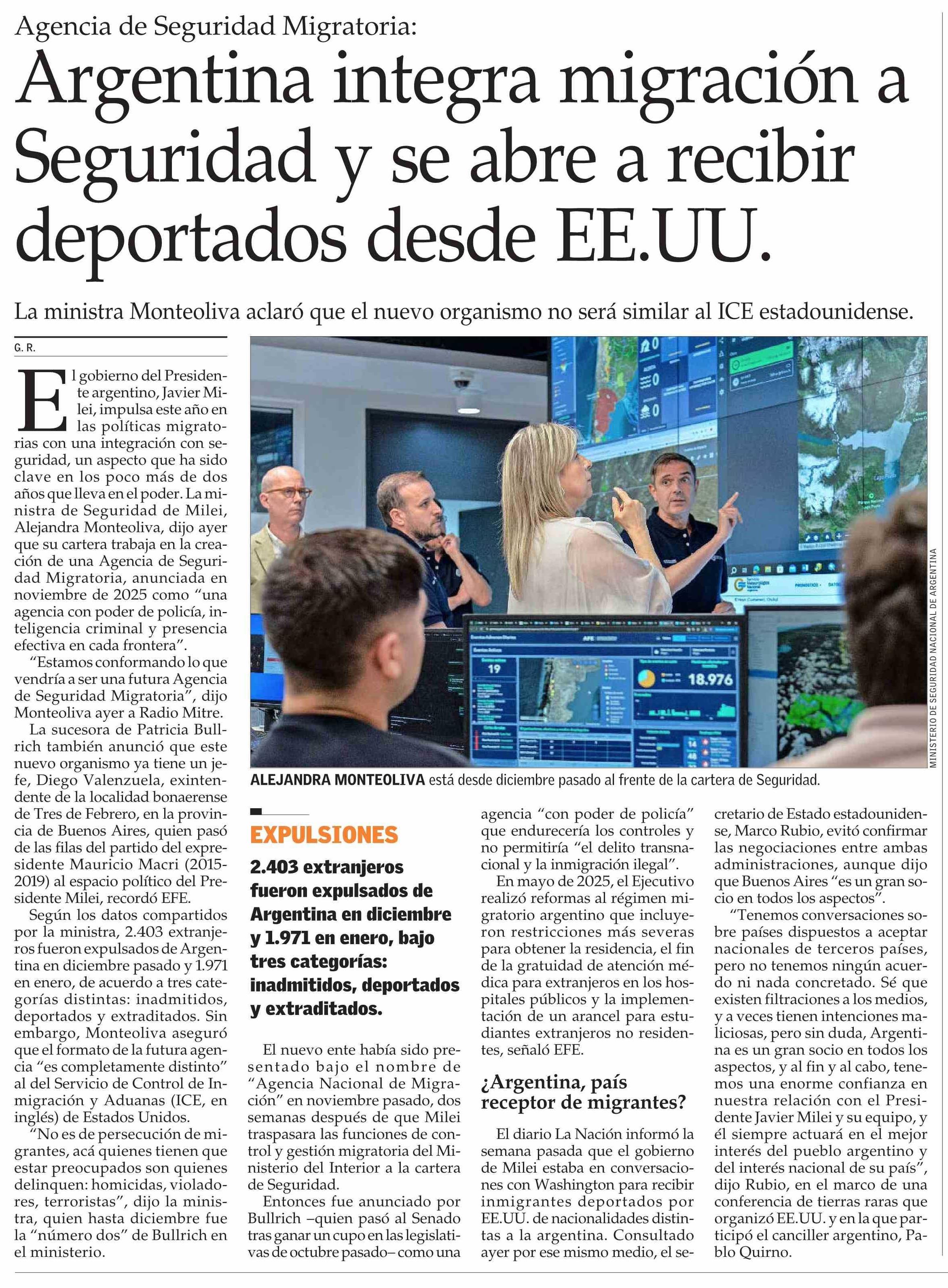 Argentina integra migración a Seguridad y se abre a recibir deportados desde EE.UU.
