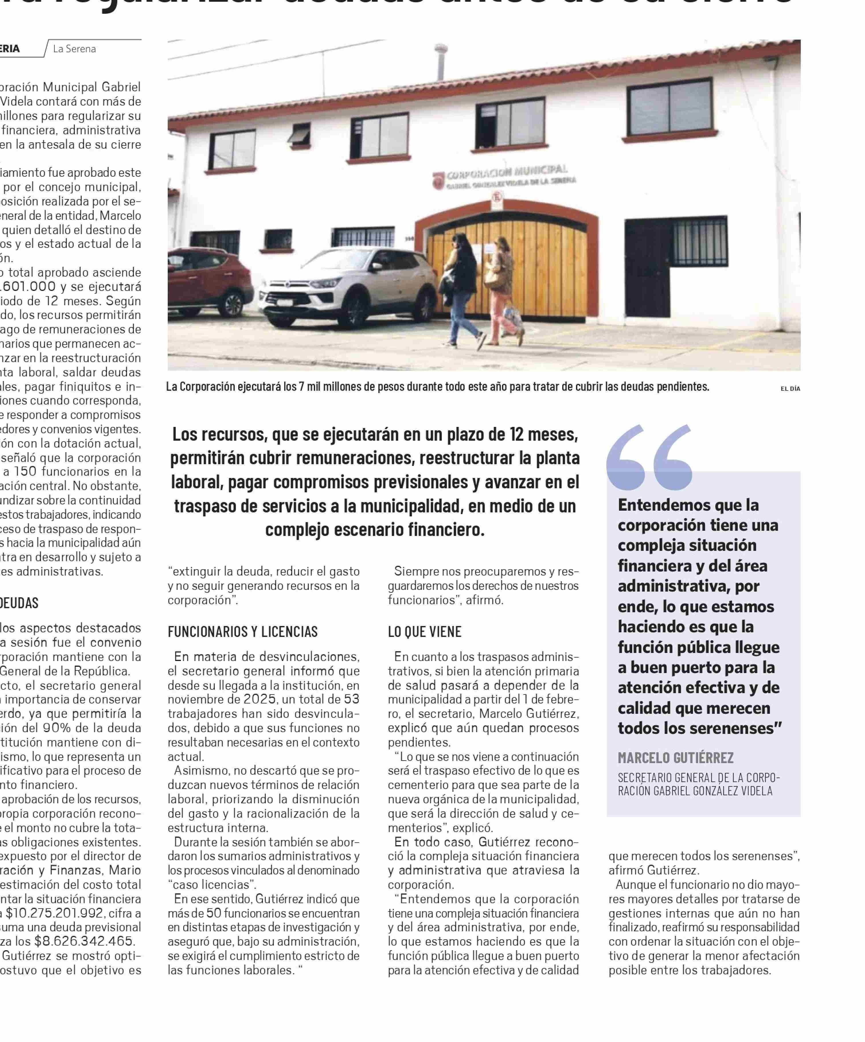 Corporación G.G.V. recibirá $7.347 millones para regularizar deudas antes de su cierre