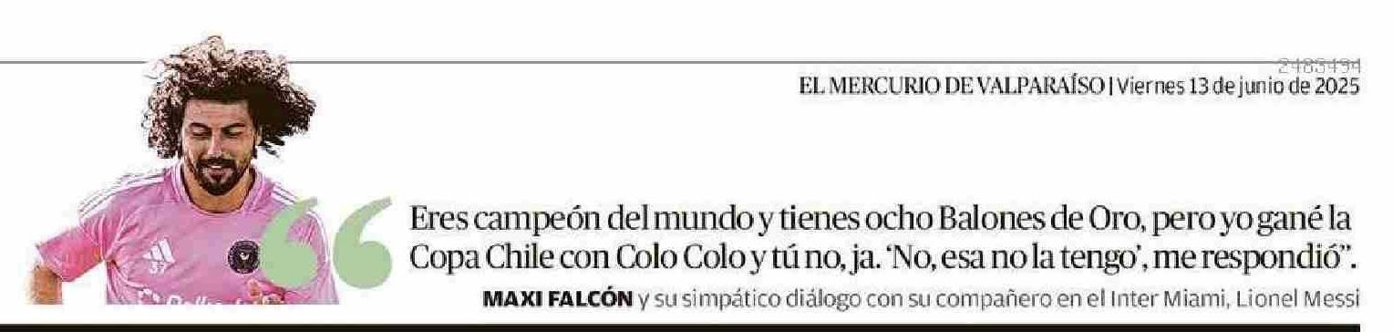 | Título: | Eres campeon del mundo y tienes ocho Balones de Oro, pero yo gane la Copa Chile con Colo Colo y tú no, ja. "No, esa no la tengo', me respondió". MAXI FALCÓN y su simpático diálogo con su compañero en el Inter Miami, Lionel Messi |