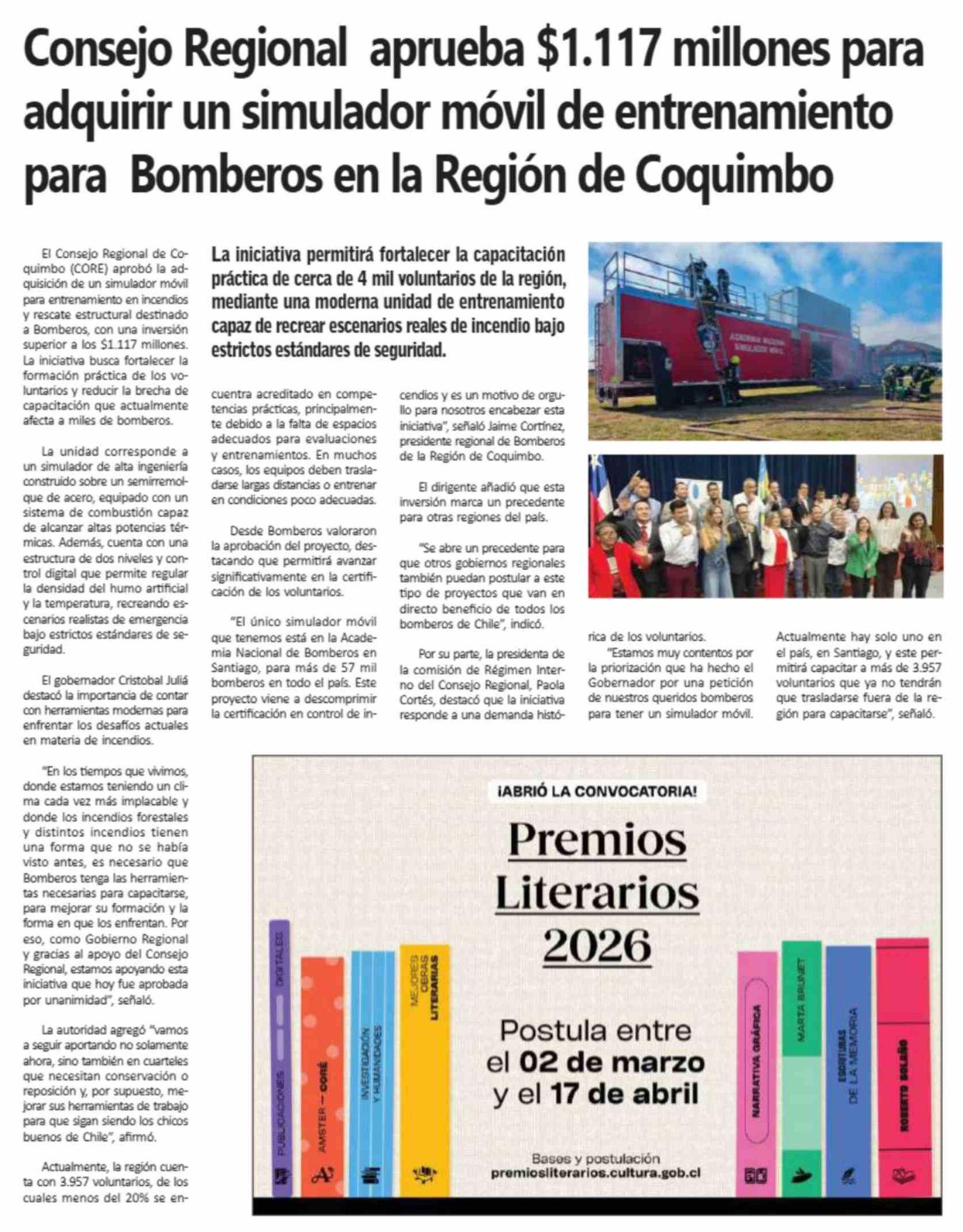 Consejo Regional aprueba $1.117 millones para adquirir un simulador móvil de entrenamiento para Bomberos en la Región de Coquimbo