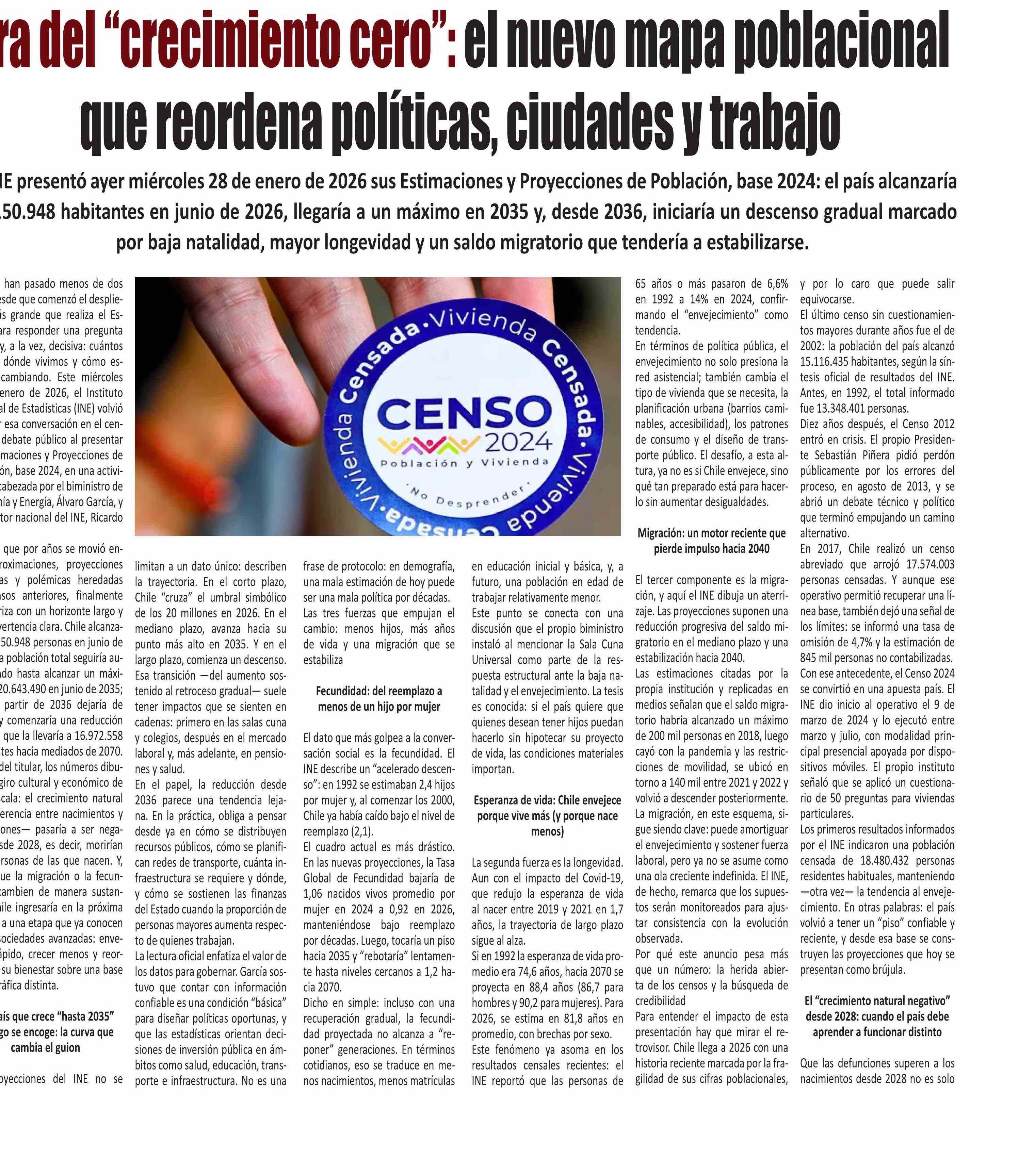 | Título: | Chile cruza la barrera de los 20 millones y entra a la era del "crecimiento cero": el nuevo mapa poblacional que reordena políticas, ciudades y trabajo |
