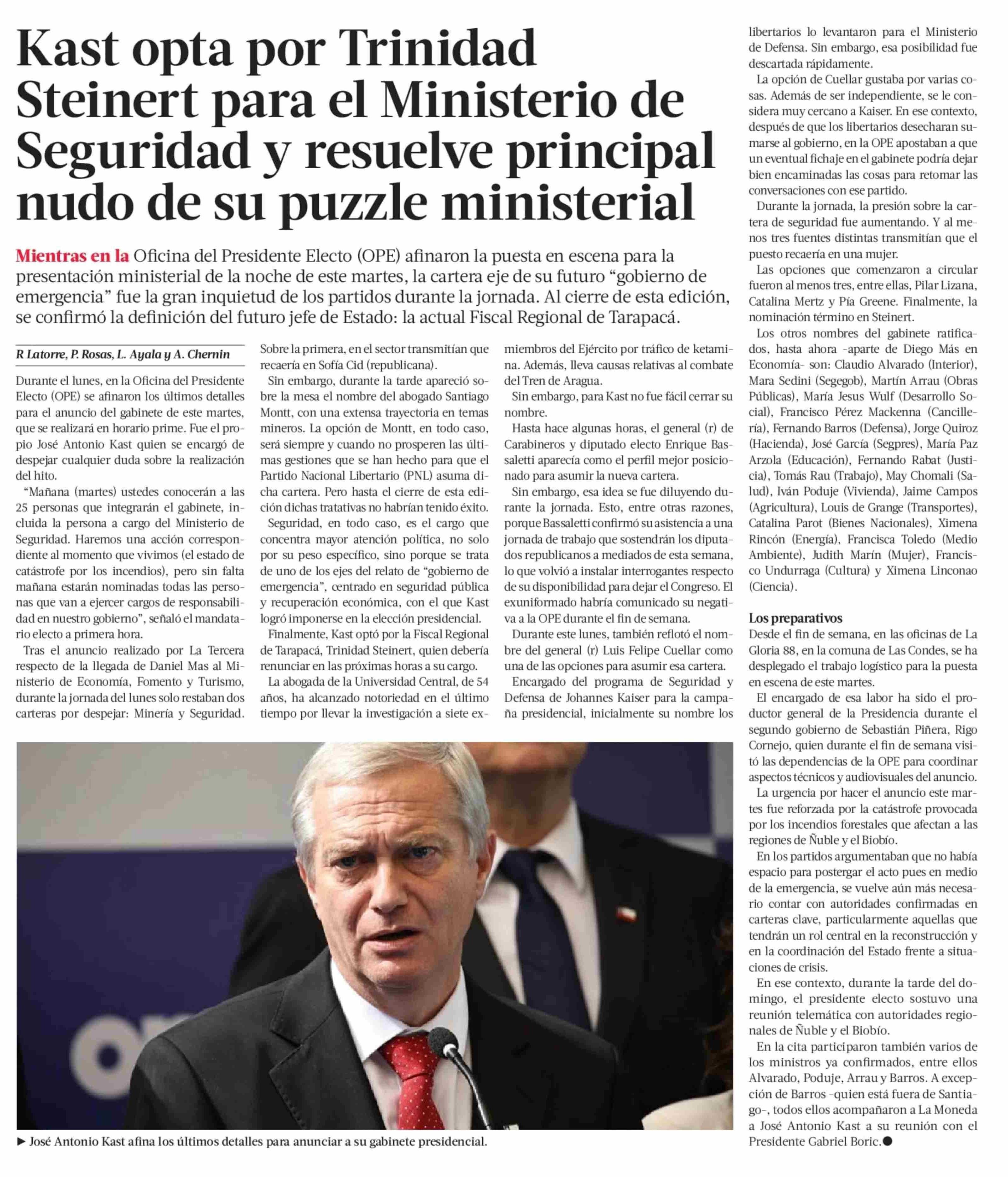 Kast opta por Trinidad Steinert para el Ministerio de Seguridad y resuelve principal nudo de su puzzle ministerial
