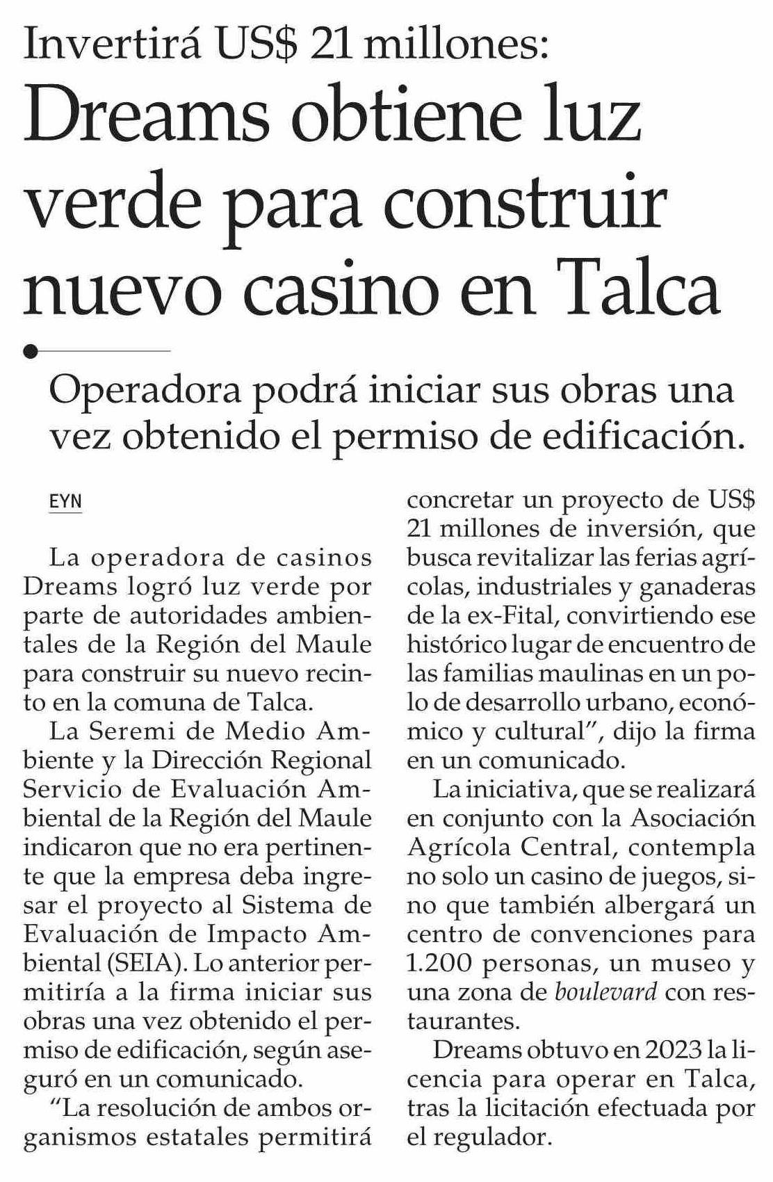 Dreams obtiene luz verde para construir nuevo casino en Talca
