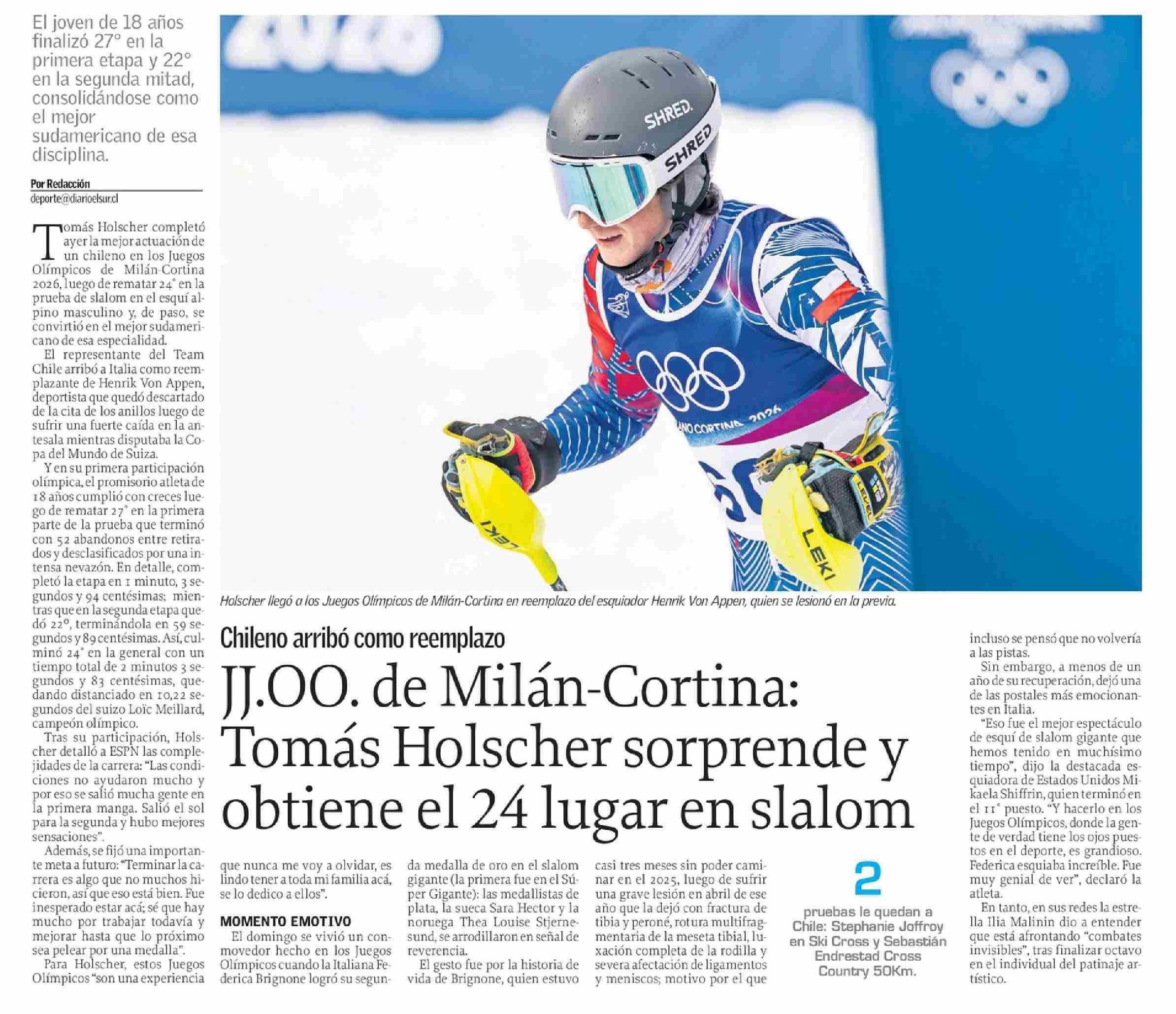 JJ.OO. de Milán-Cortina: Tomás Holscher sorprende y obtiene el 24 lugar en slalom