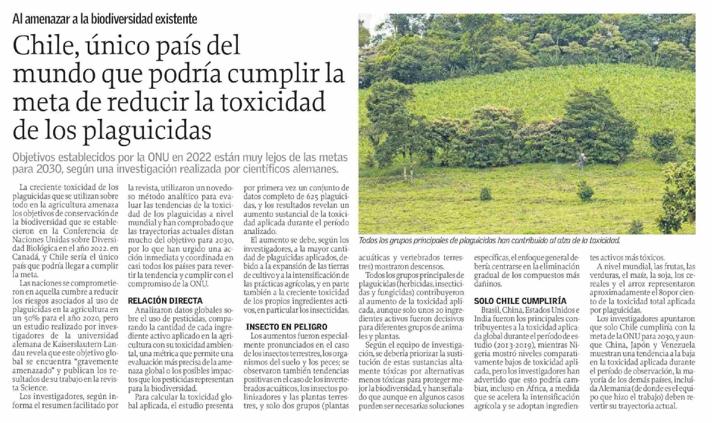 Chile, único país del mundo que podría cumplir la meta de reducir la toxicidad de los plaguicidas