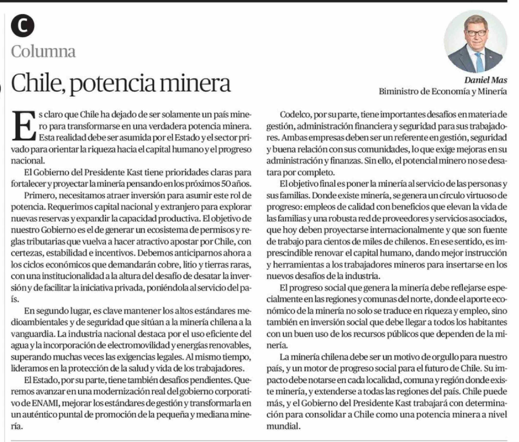 Columnas de Opinión: Chile, potencia minera