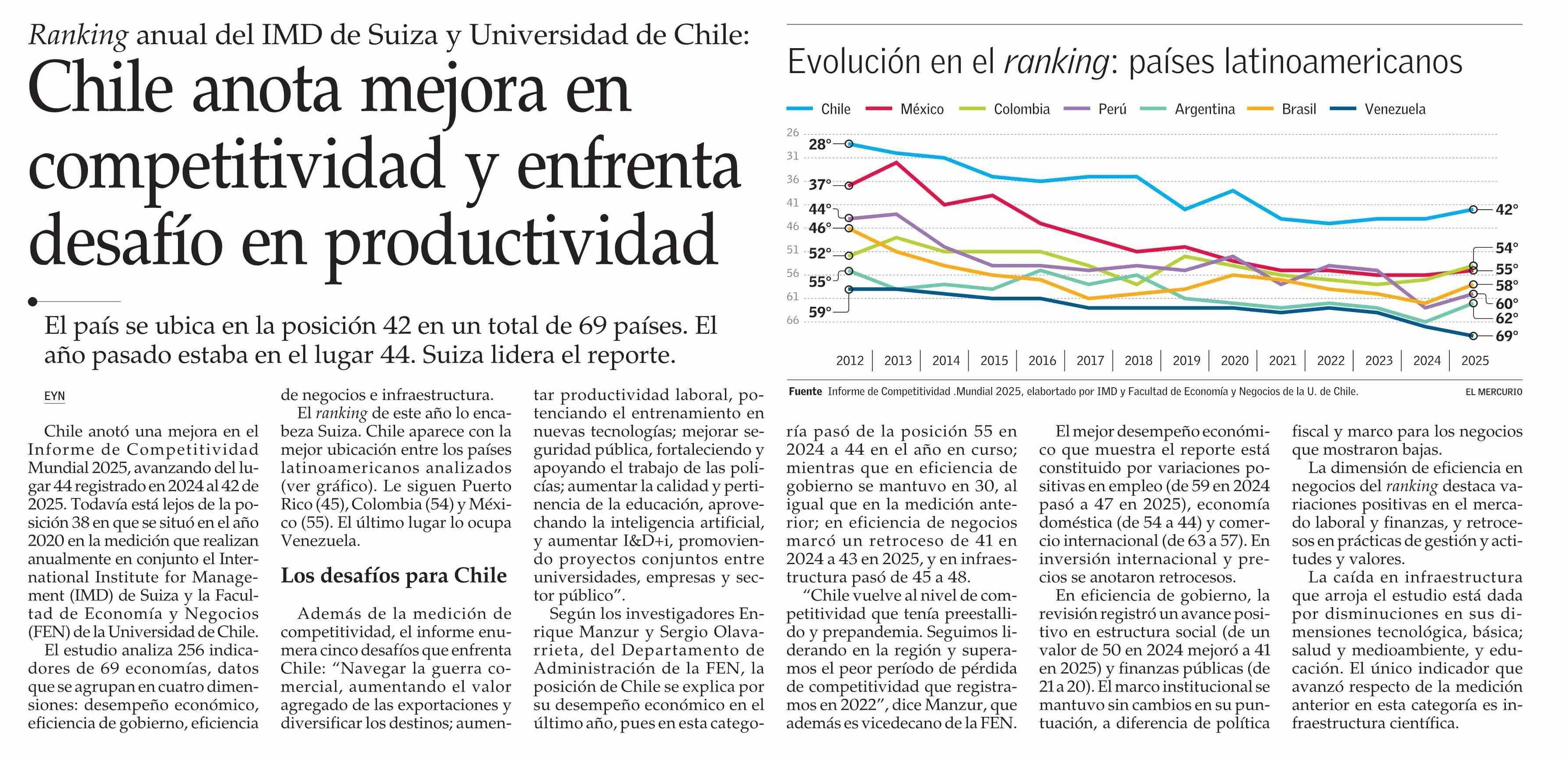 Chile anota mejora en competitividad y enfrenta desafío en productividad