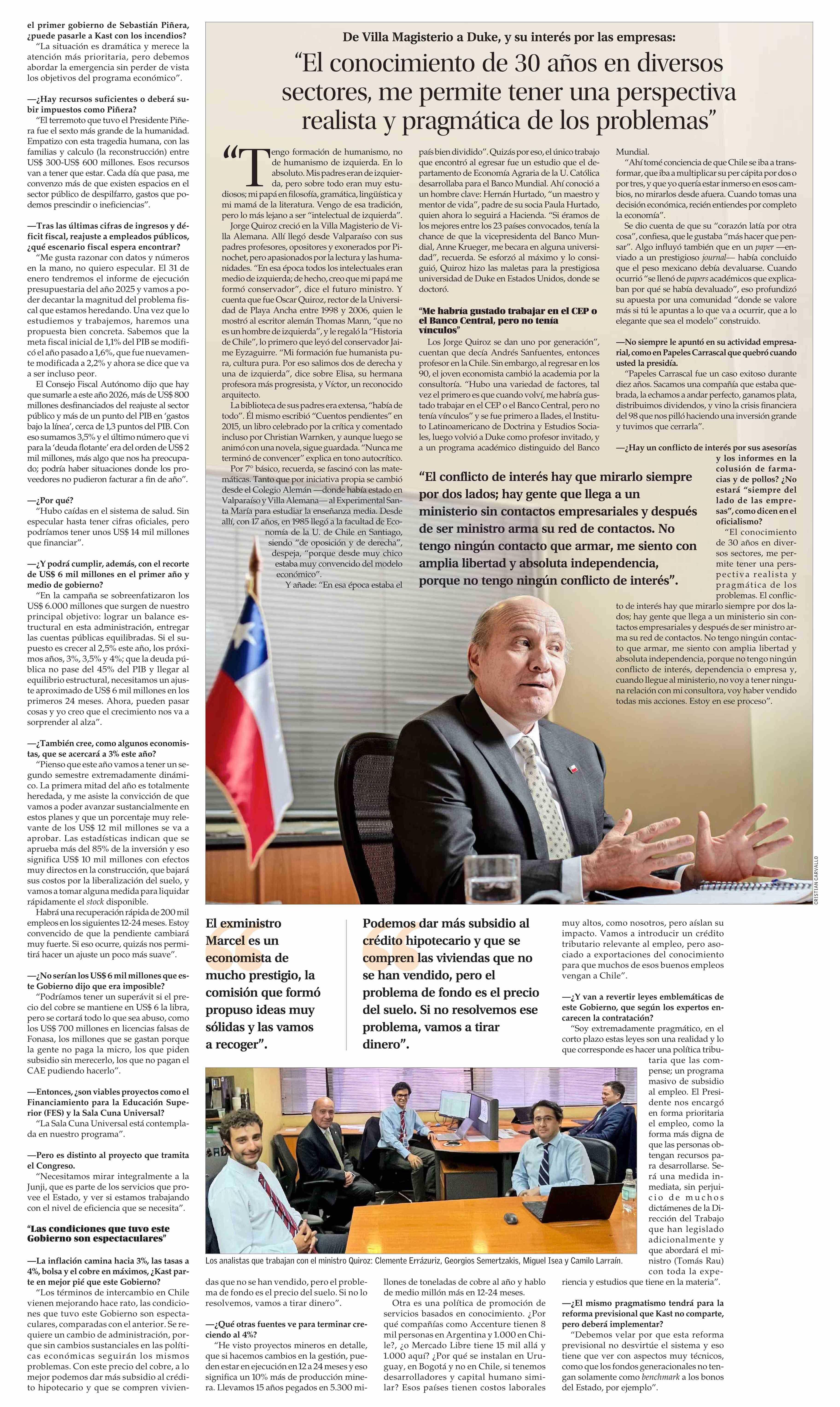 | Título: | FUTURO MINISTRO DE HACIENDA: “Estoy muy convencido de que la pendiente cambiará muy fuerte. Si ocurre, quizás permita un ajuste un poco más suave” |