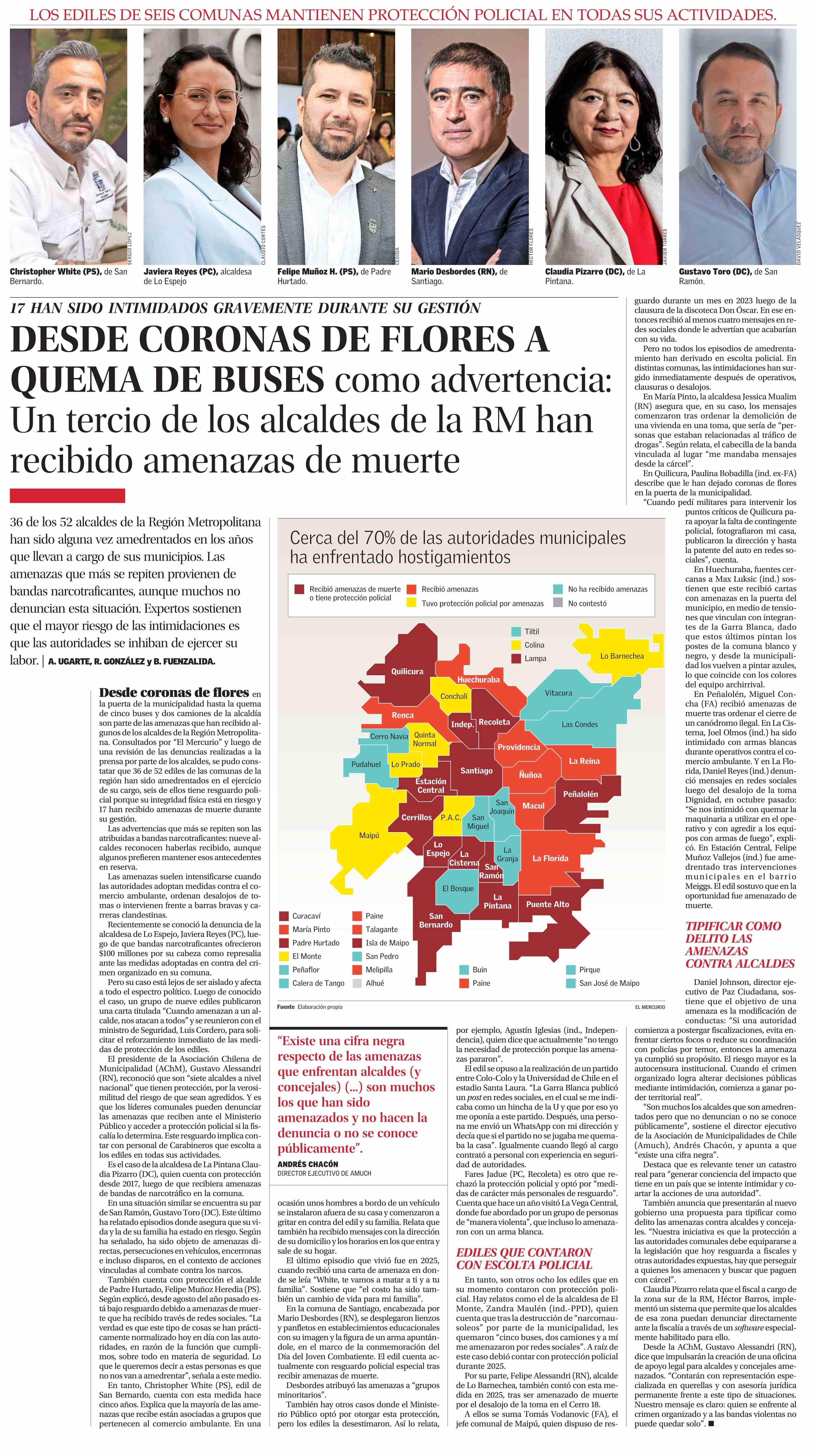 DESDE CORONAS DE FLORES A QUEMA DE BUSES como advertencia: Un tercio de los alcaldes de la RM han recibido amenazas de muerte