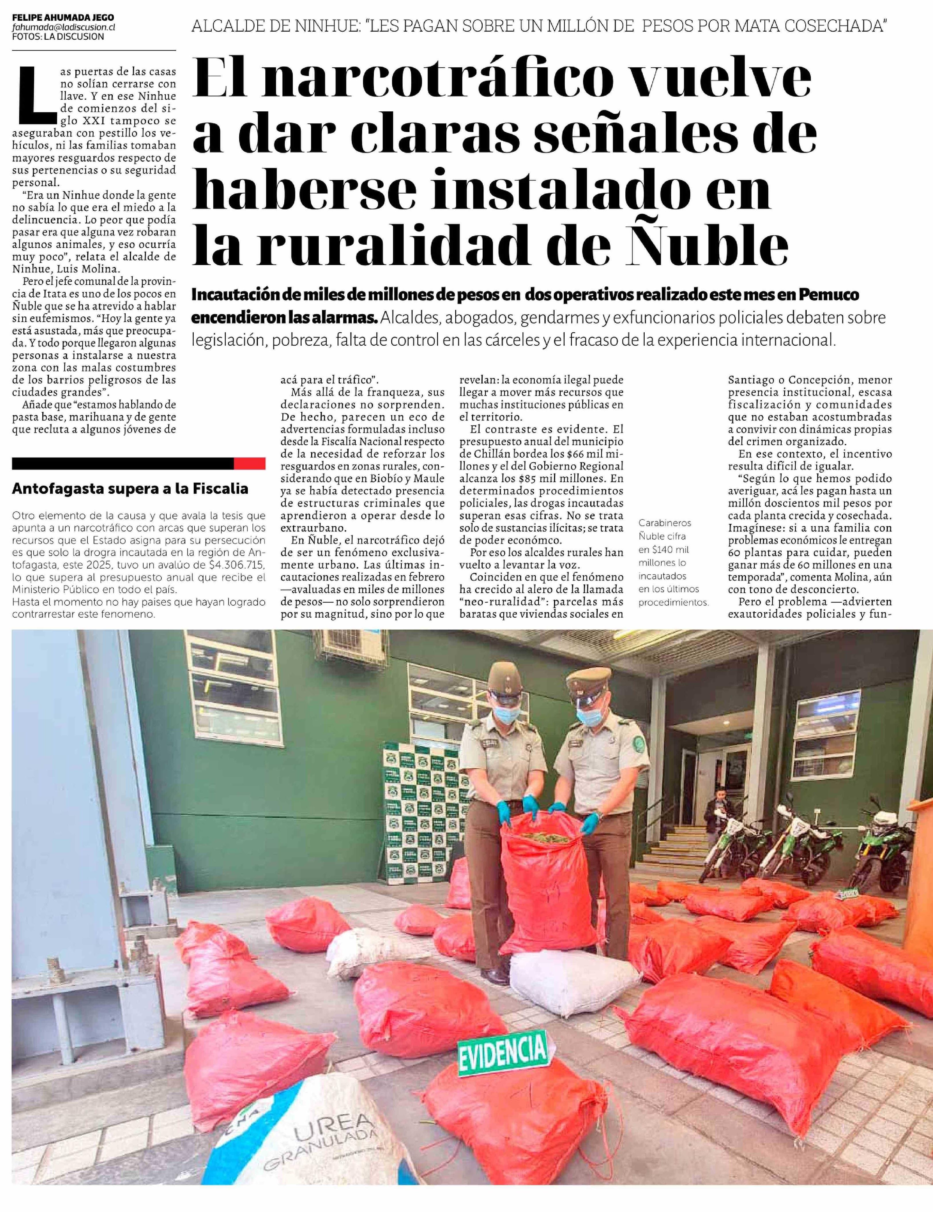 El narcotráfico vuelve a dar claras señales de haberse instalado en la ruralidad de Nuble