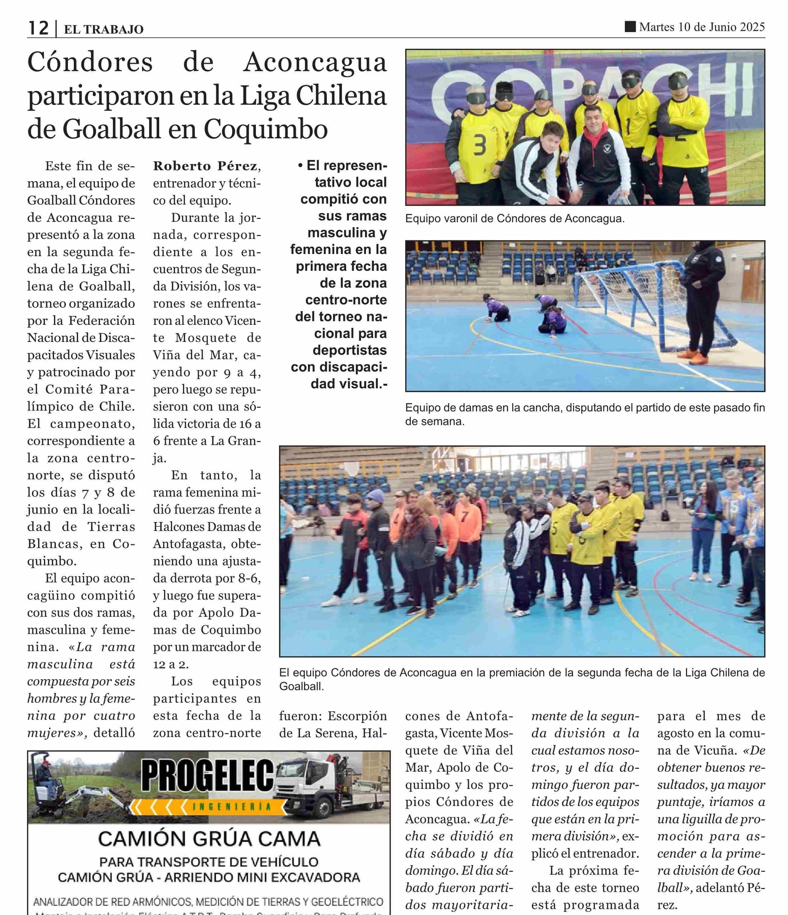 Cóndores de Aconcagua participaron en la Liga Chilena de Goalball en Coquimbo