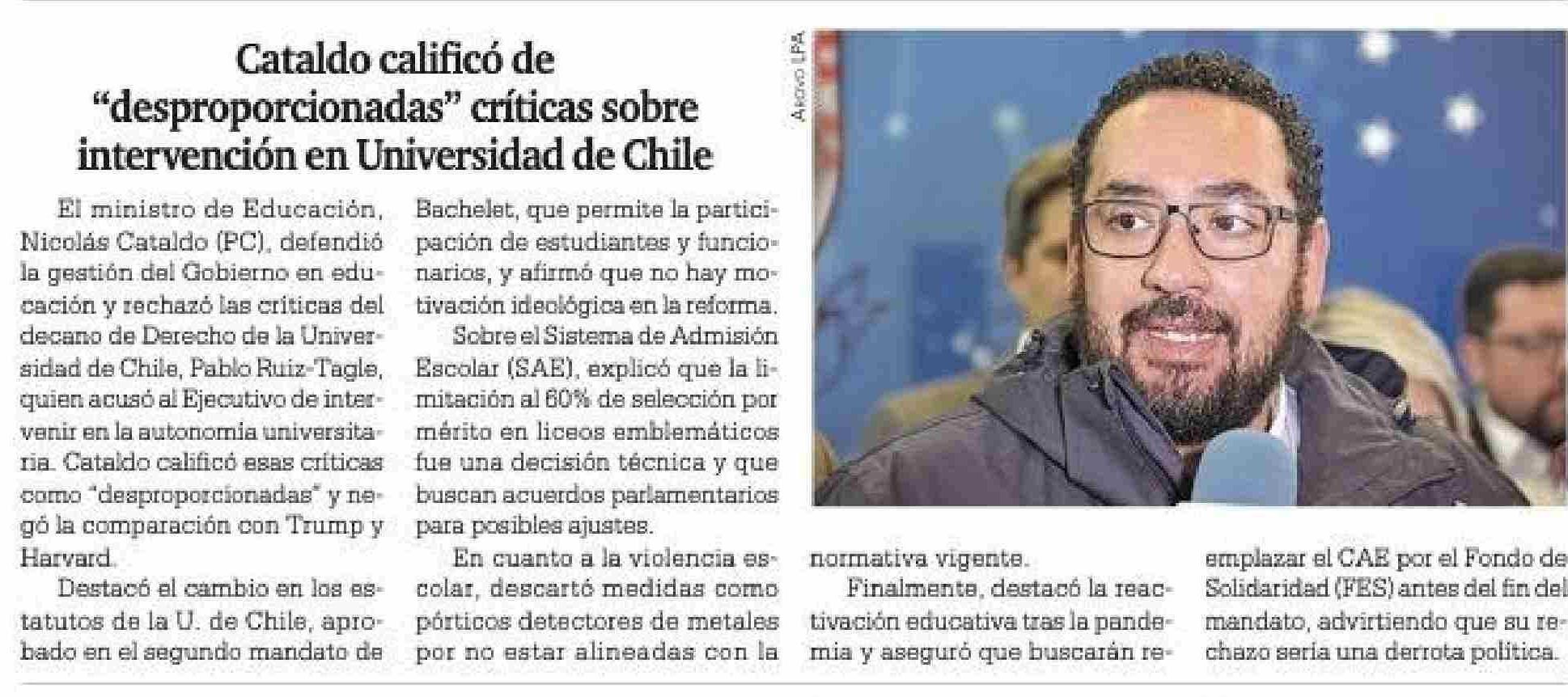 Cataldo calificó de “desproporcionadas” críticas sobre intervención en Universidad de Chile