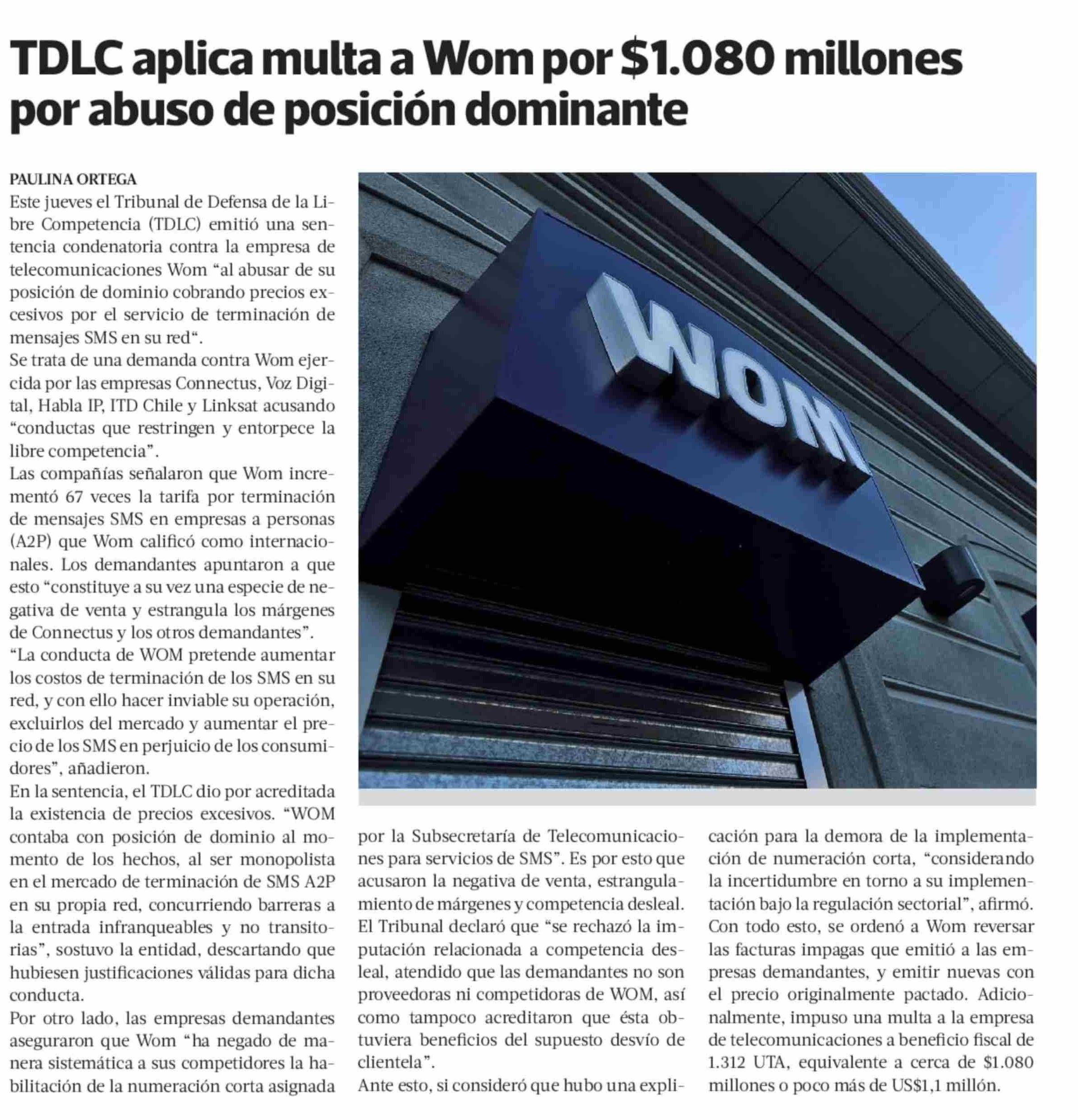 TDLC aplica multa a Wom por $1.080 millones por abuso de posición dominante