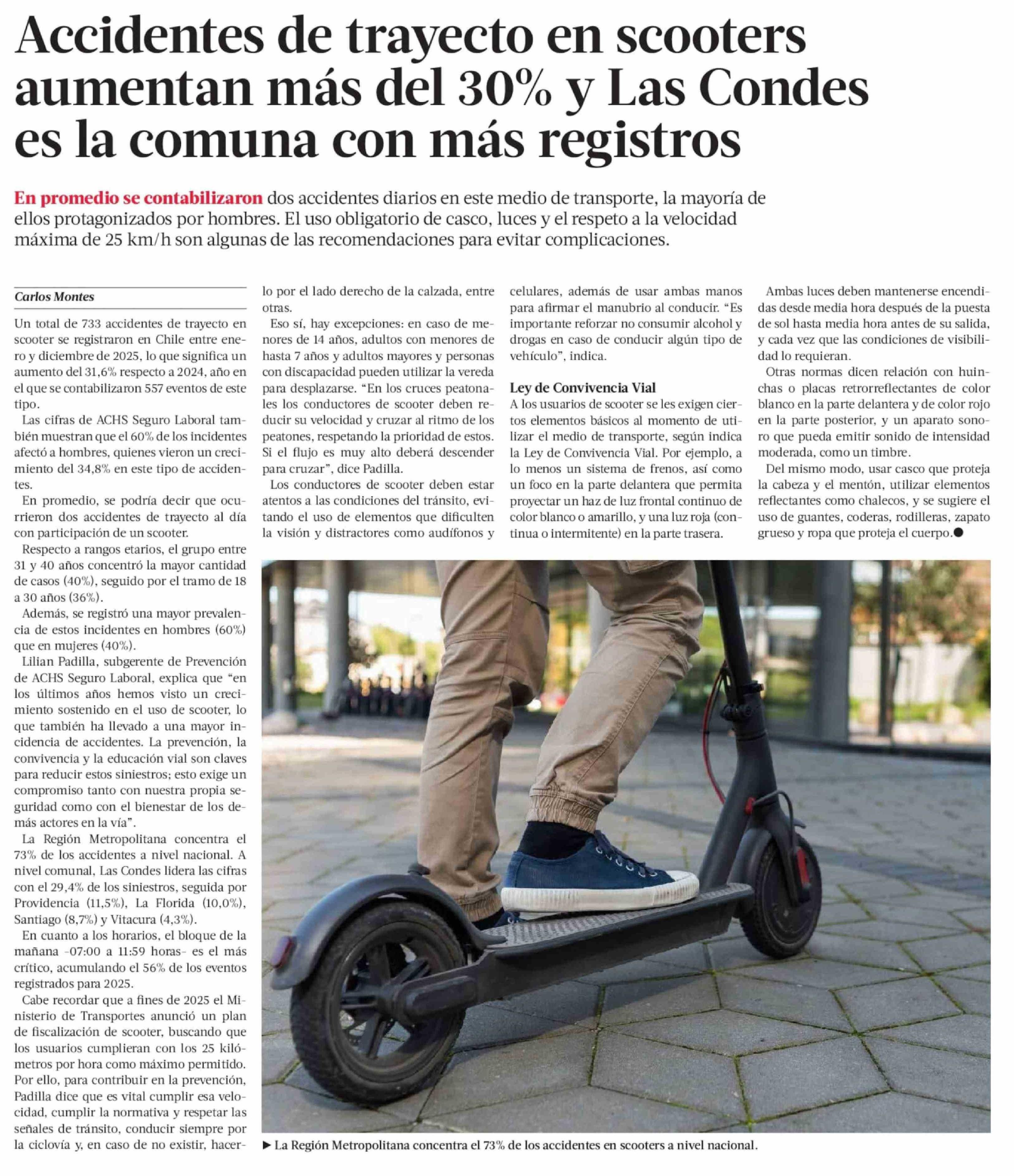 Accidentes de trayecto en scooters aumentan más del 30% y Las Condes es la comuna con más registros