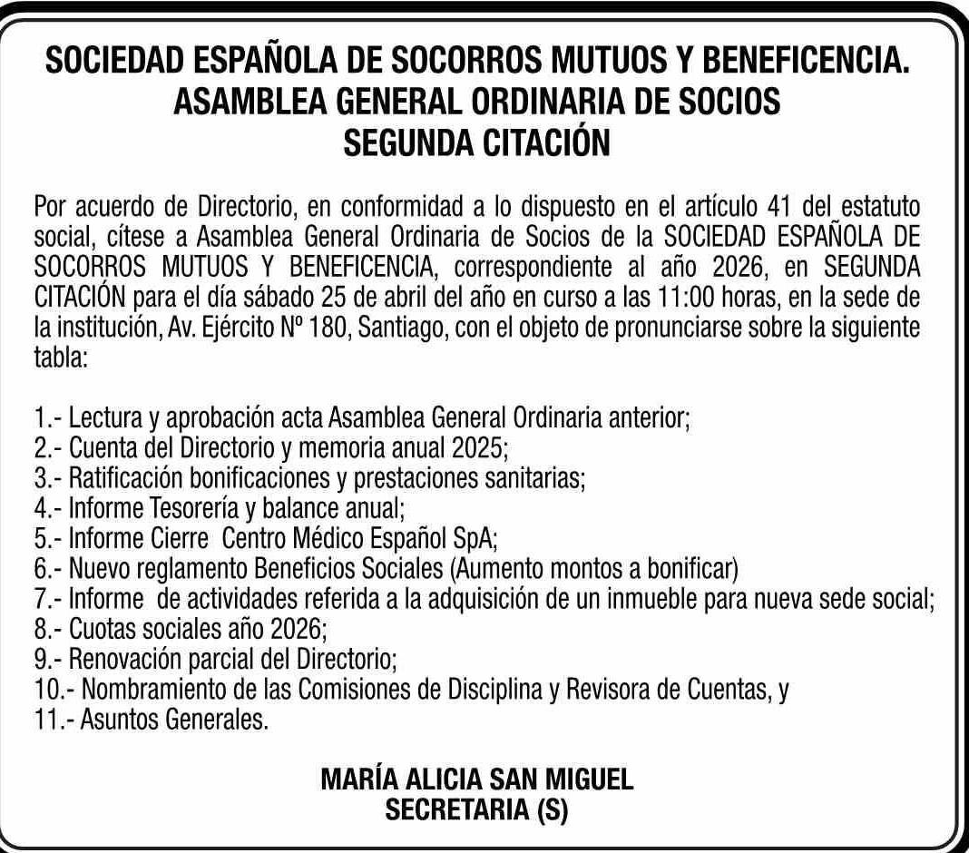 Extractos: SOCIEDAD ESPAÑOLA DE SOCORROS MUTUOS Y BENEFICENCIA.