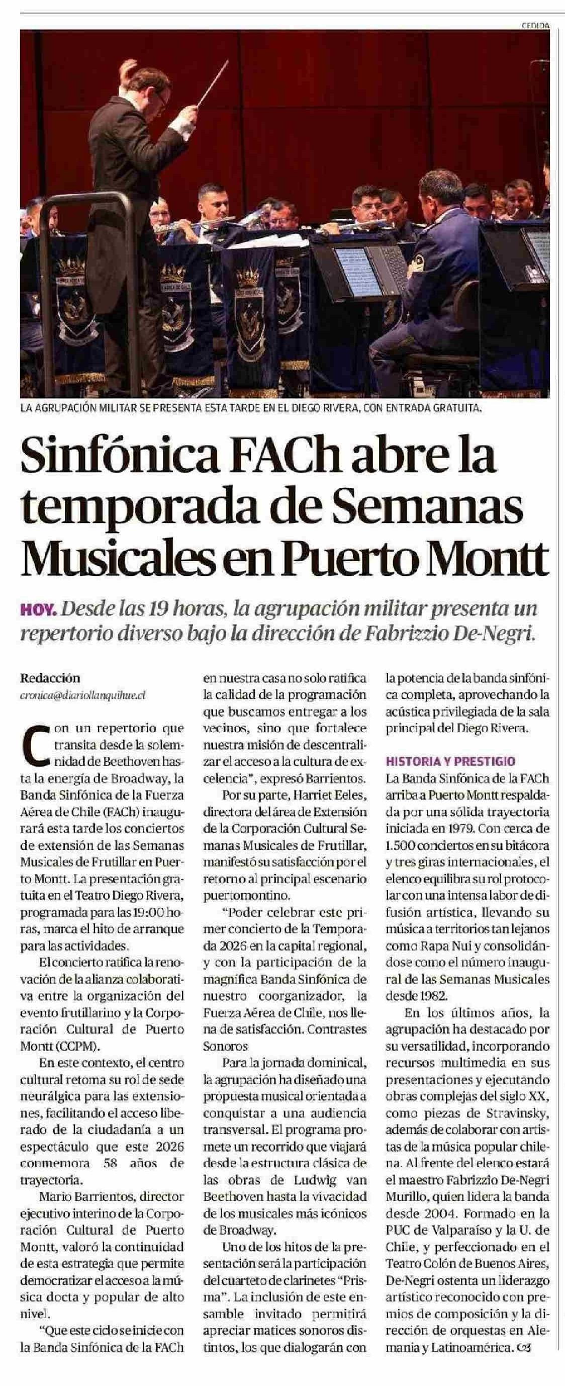 Sinfónica FACh abre la temporada de Semanas Musicales en Puerto Montt