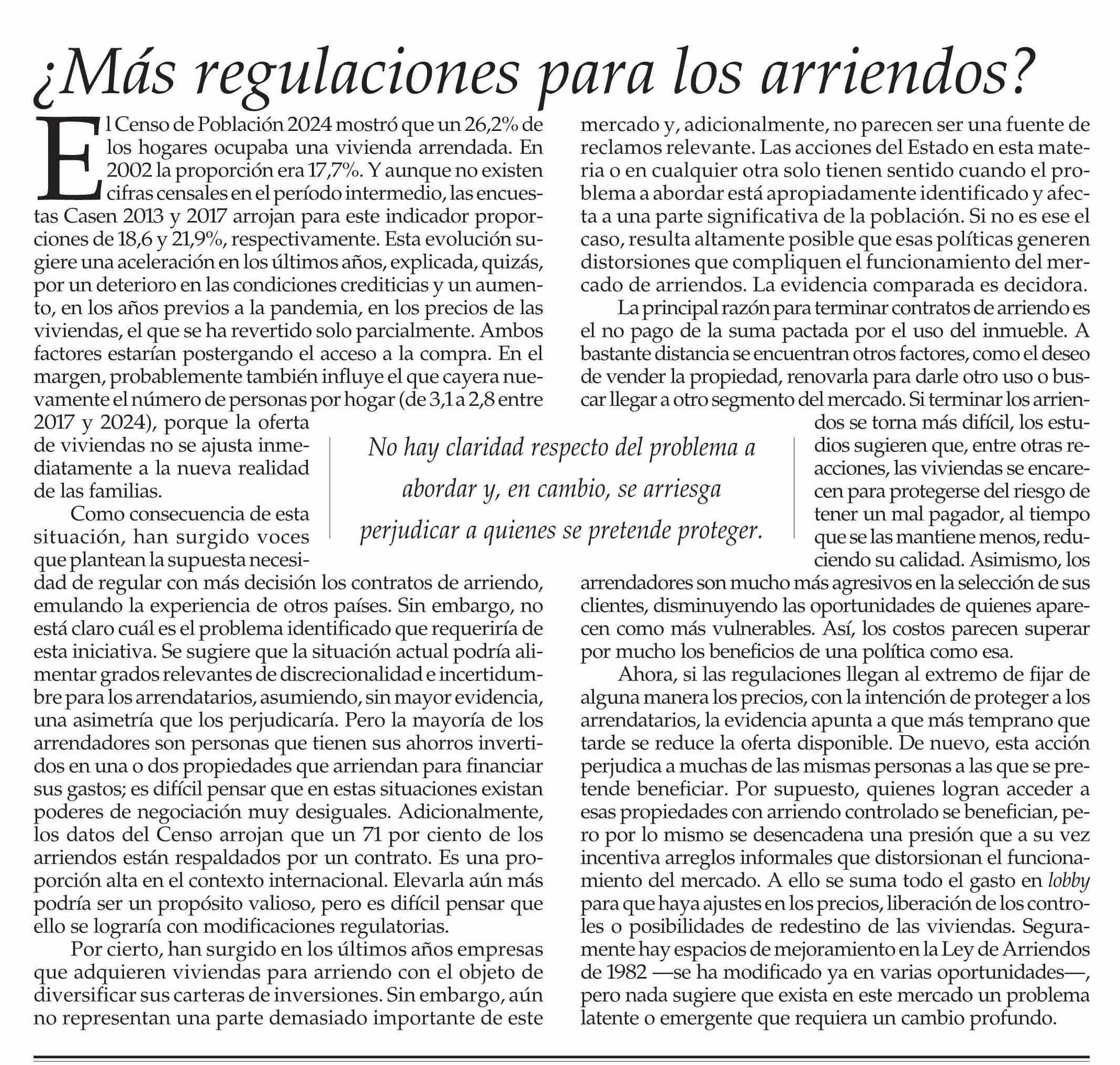 EDITORIAL: ¿Más regulaciones para los arriendos?