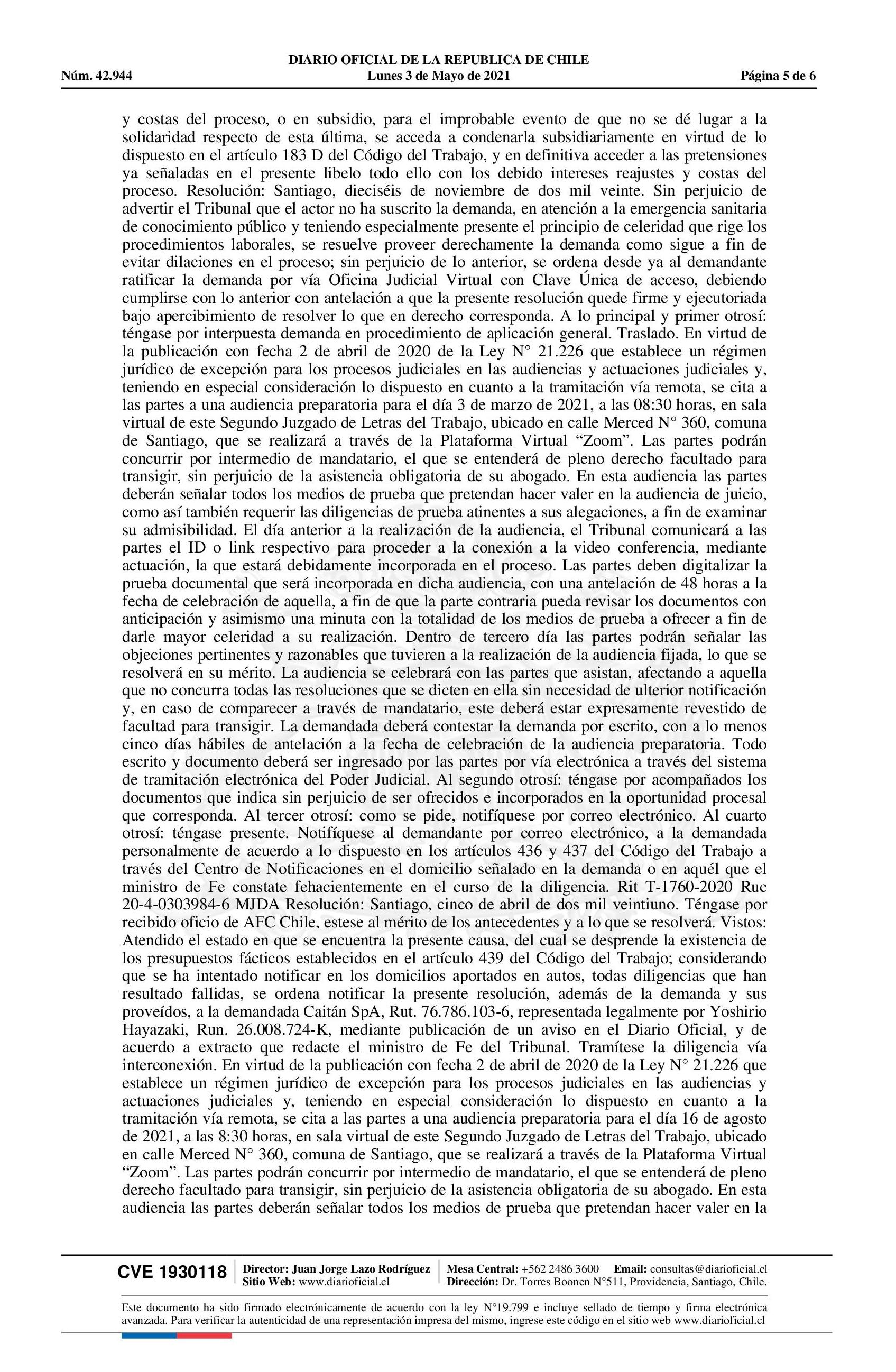 Diario Oficial Edición Electrónica (Diario Oficial de Chile - 3 Public. Judiciales)