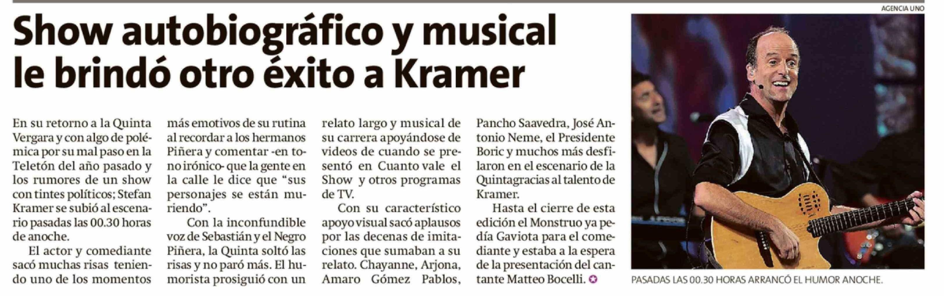 Show autobiográfico y musical le brindó otro éxito a Kramer