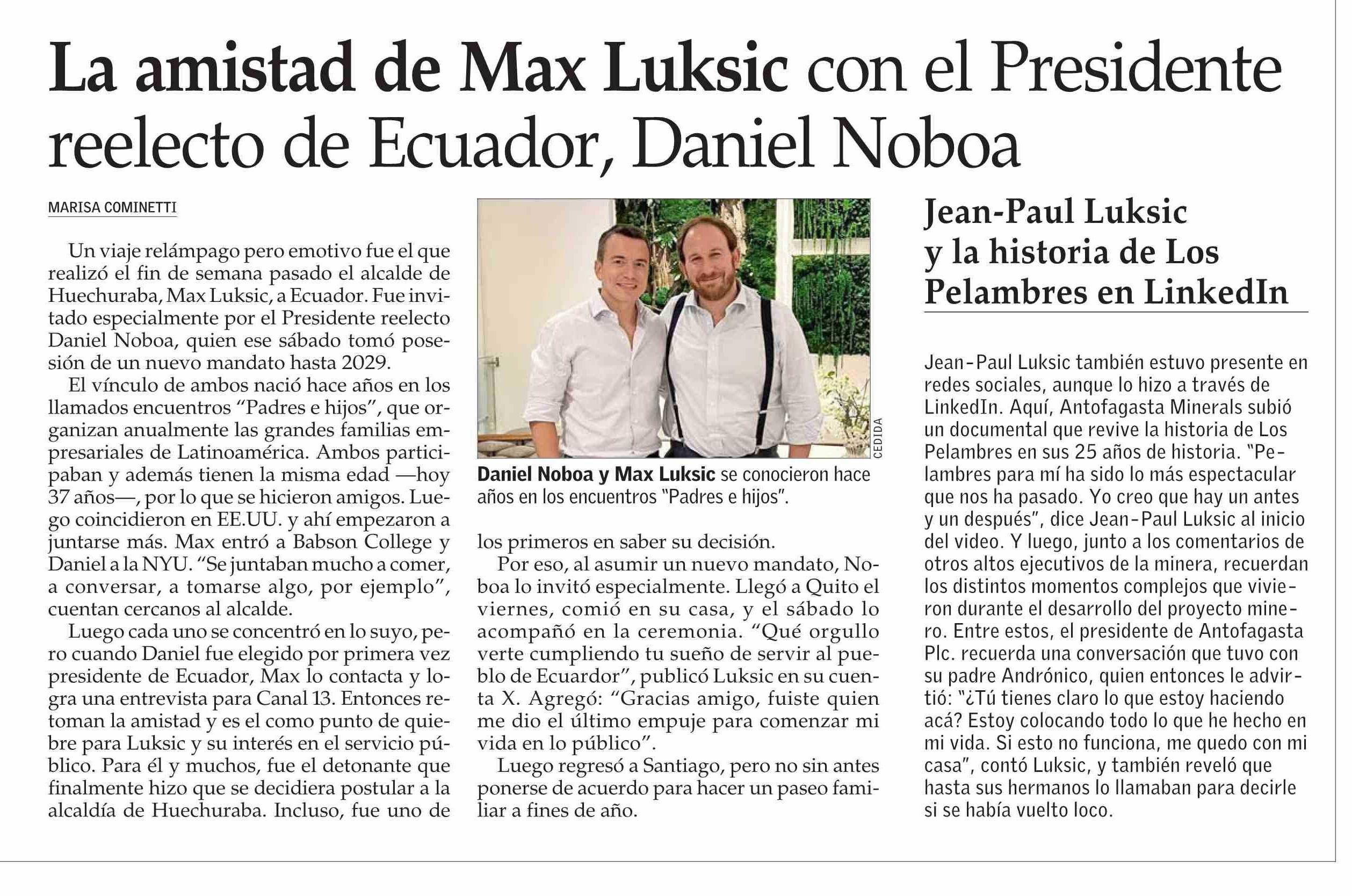 La amistad de Max Luksic con el Presidente reelecto de Ecuador, Daniel Noboa